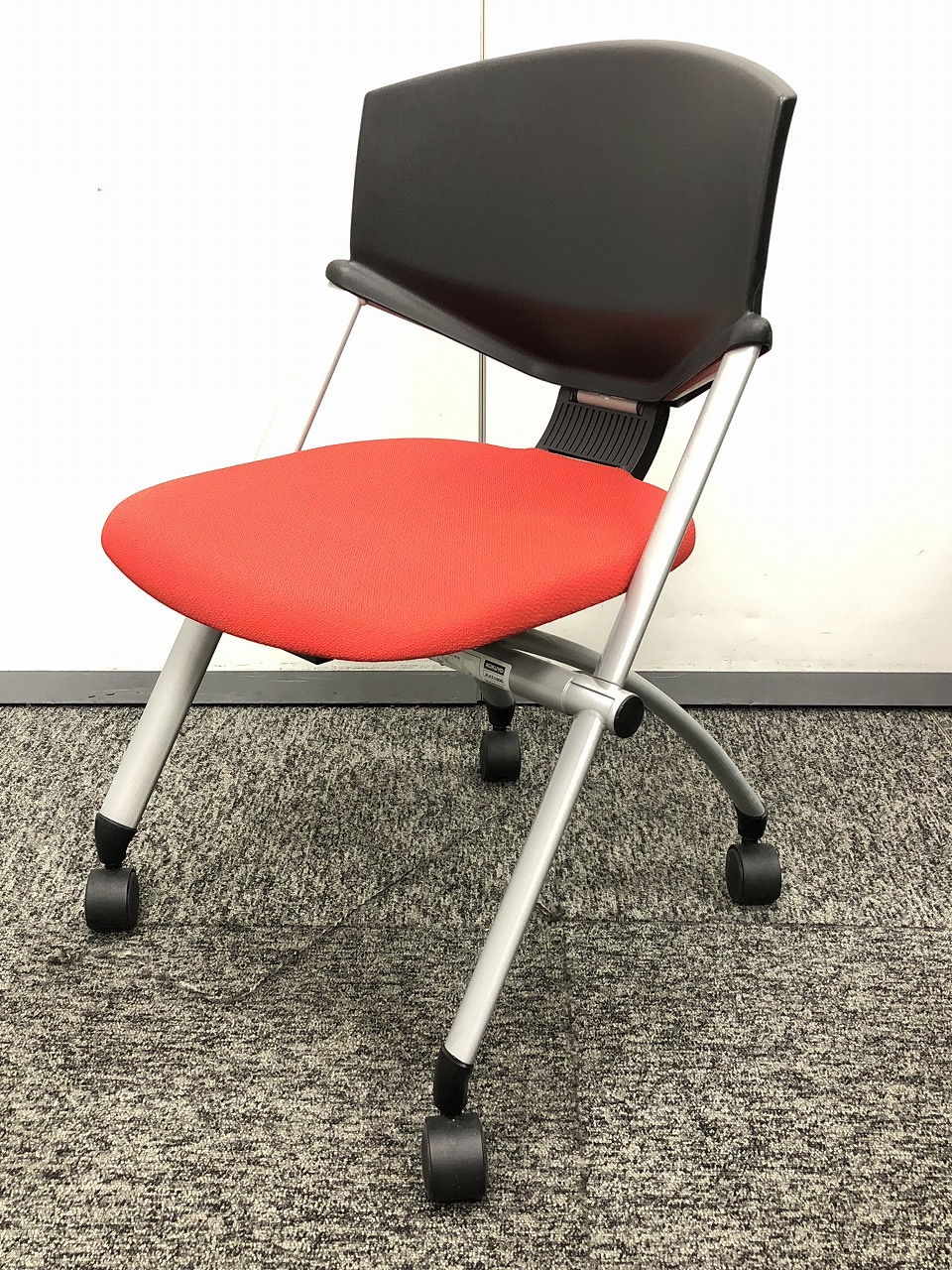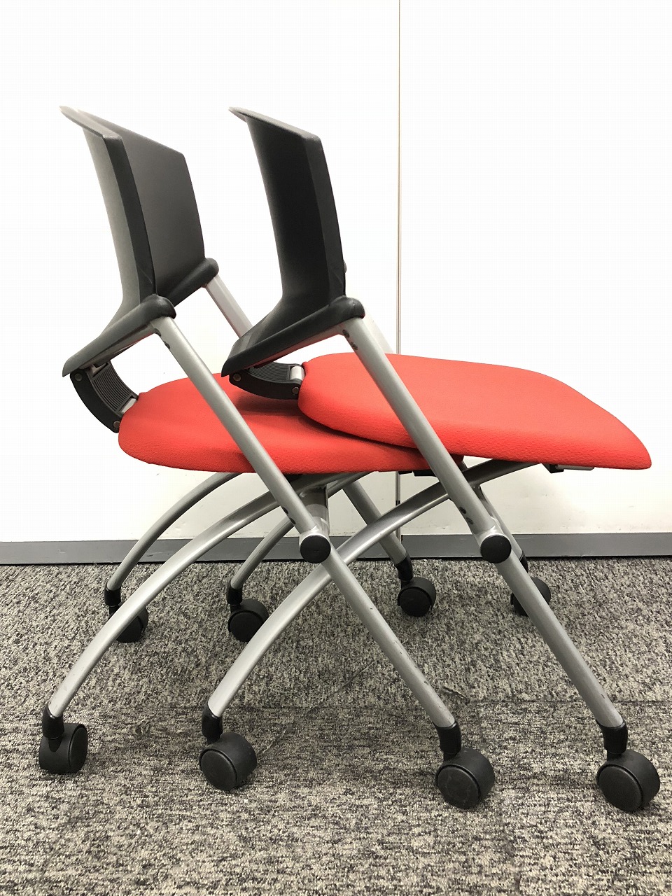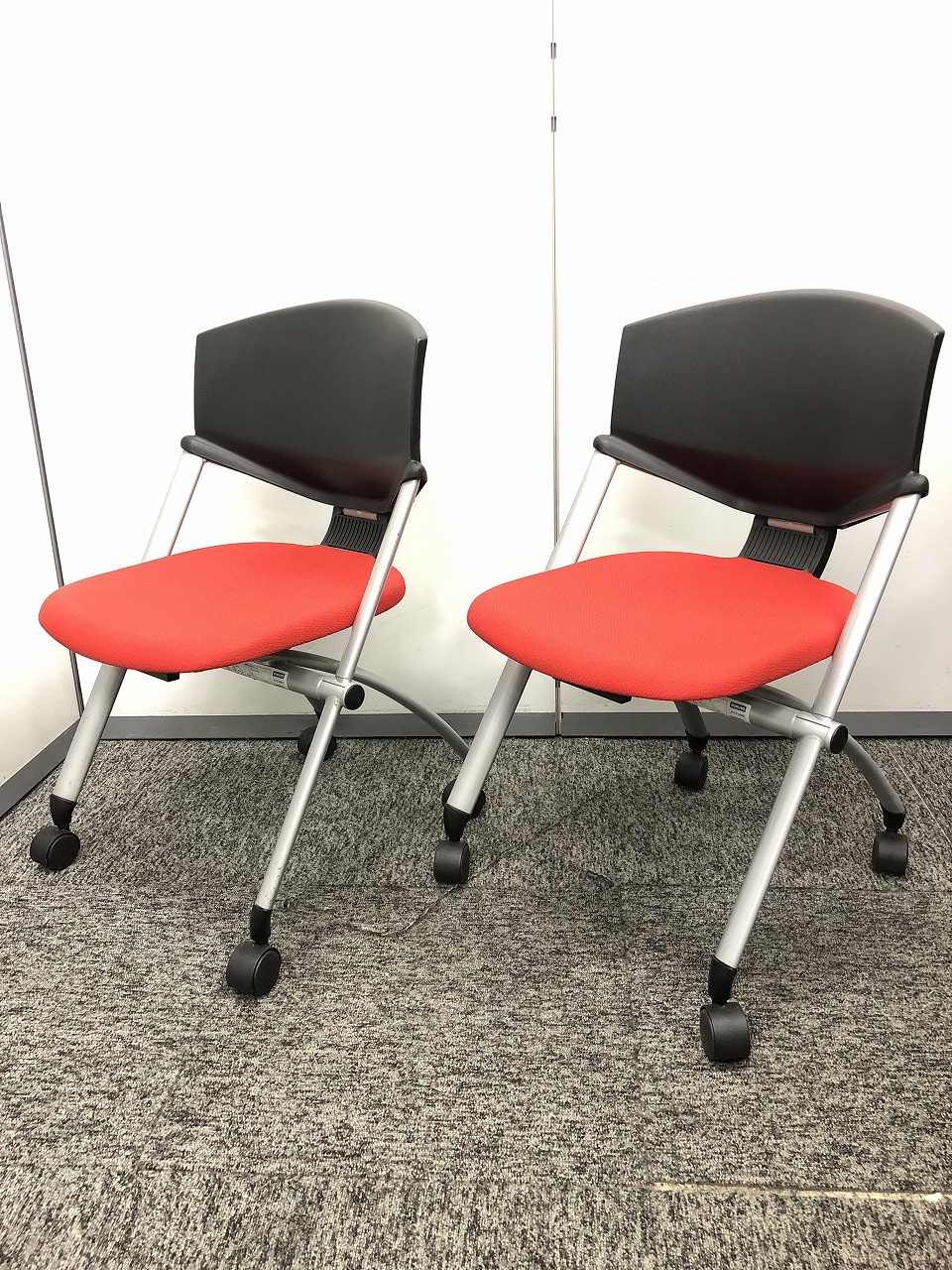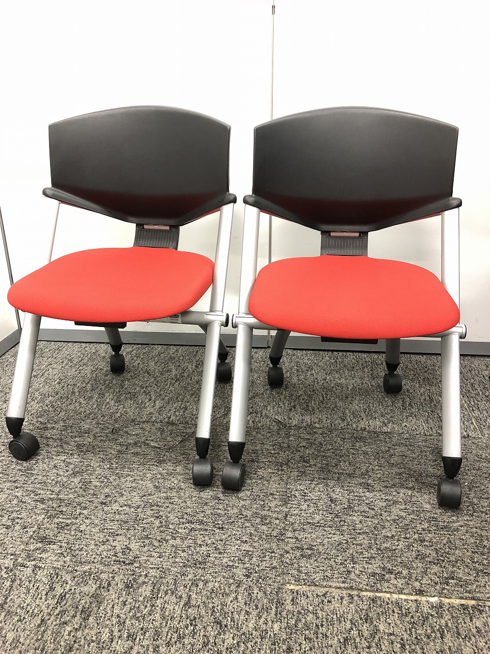 【2脚セット】会議室や休憩スペースに最適 鮮やかレッド- なんば日本橋店