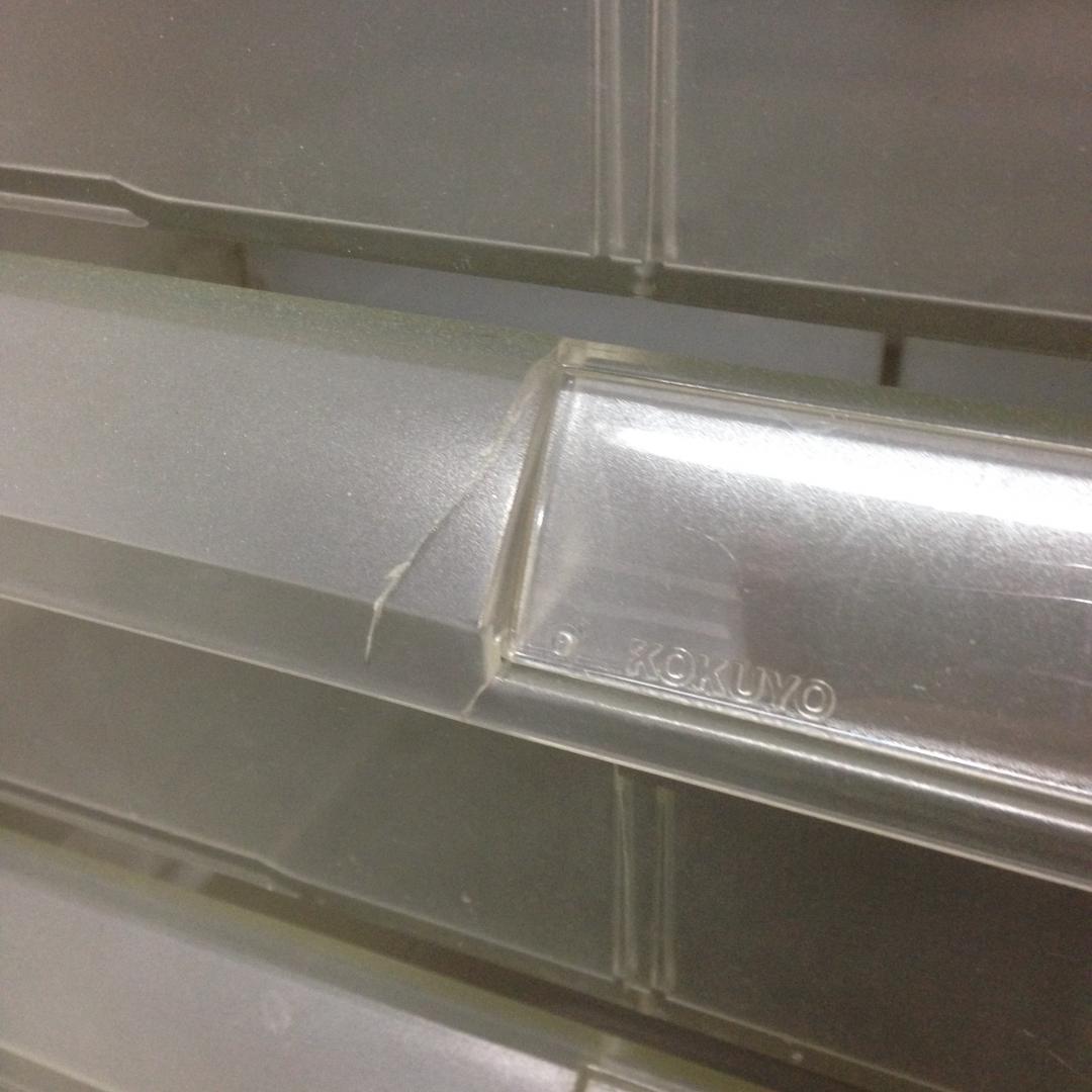 - 壊れている引出の開閉不可、施錠不可、棚板無しといったその書庫の本来の効用を果たすための機能に不具合がある(例、扉、引出の開閉が行えない。)