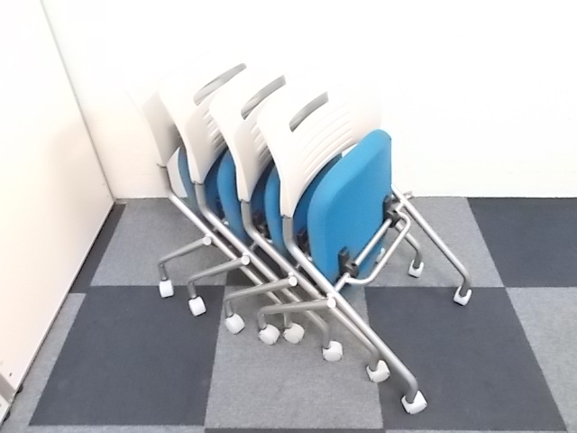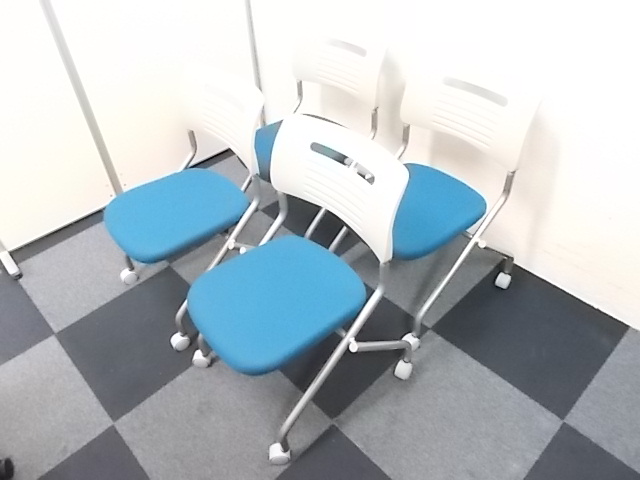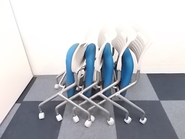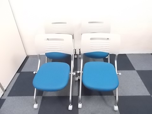 【4脚セット商品】平行に重ねて収納出来るので、スぺ-ス削減に貢献出来ますよ!!カラーも人気のブルー×ホワイトなので、どんなシーンにもピッタリです! 【新古品なので状態良好です!】【16脚限定】新古