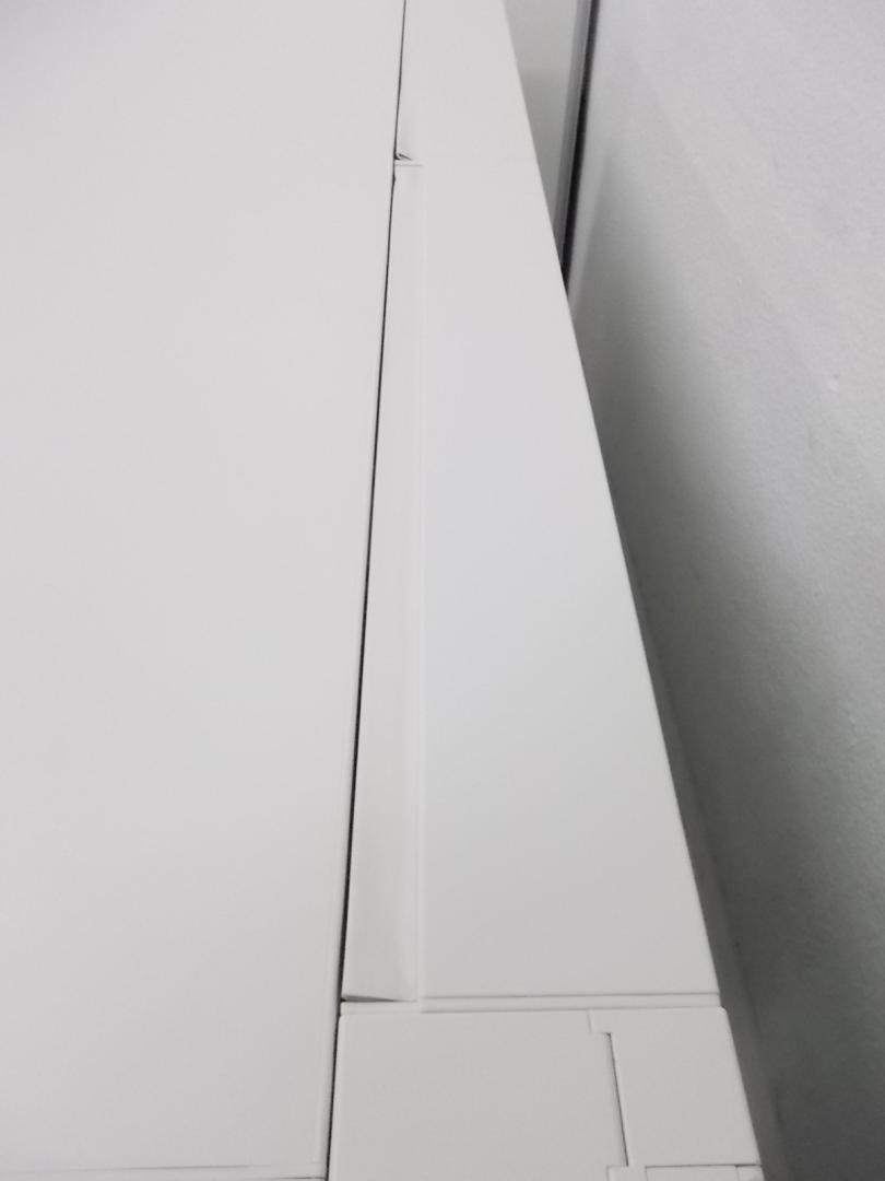- 机の角がシャープなので、隣り合うデスクがフラットにつながります。すっきりとしたデザインです。