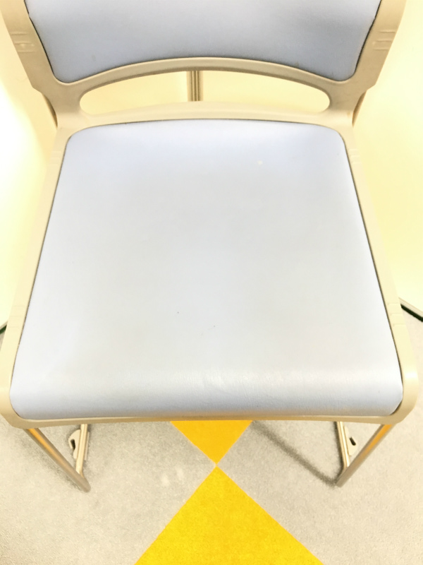 - あり黄ばみ・変色が広い範囲にうっすらある、または濃い黄ばみ・変色が一部ある。(例、座面・背もたれ、脚部等にある。)