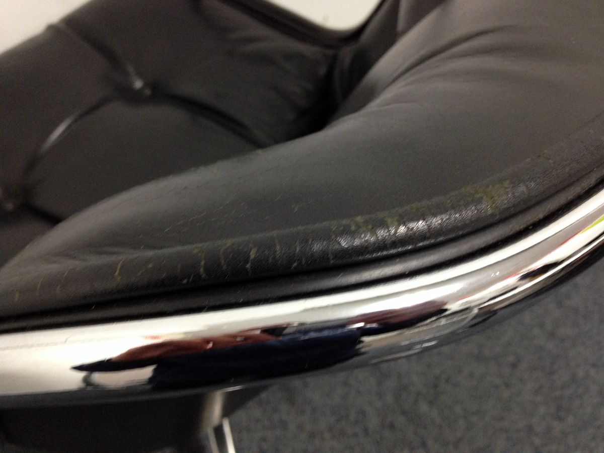 - かなり強い濃い黄ばみ・変色が商品全体にある。(例、座面・背もたれ、脚部等にある。)