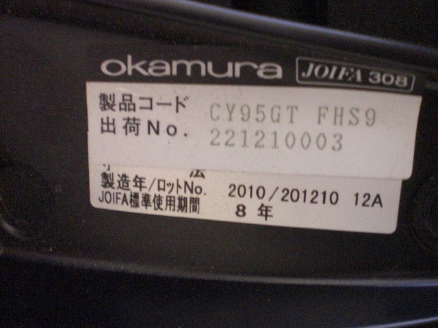 【中古】 ゼファー(クッション) CY95GT FHS9 オカムラ/okamura 肘付ハイバックチェア 215040