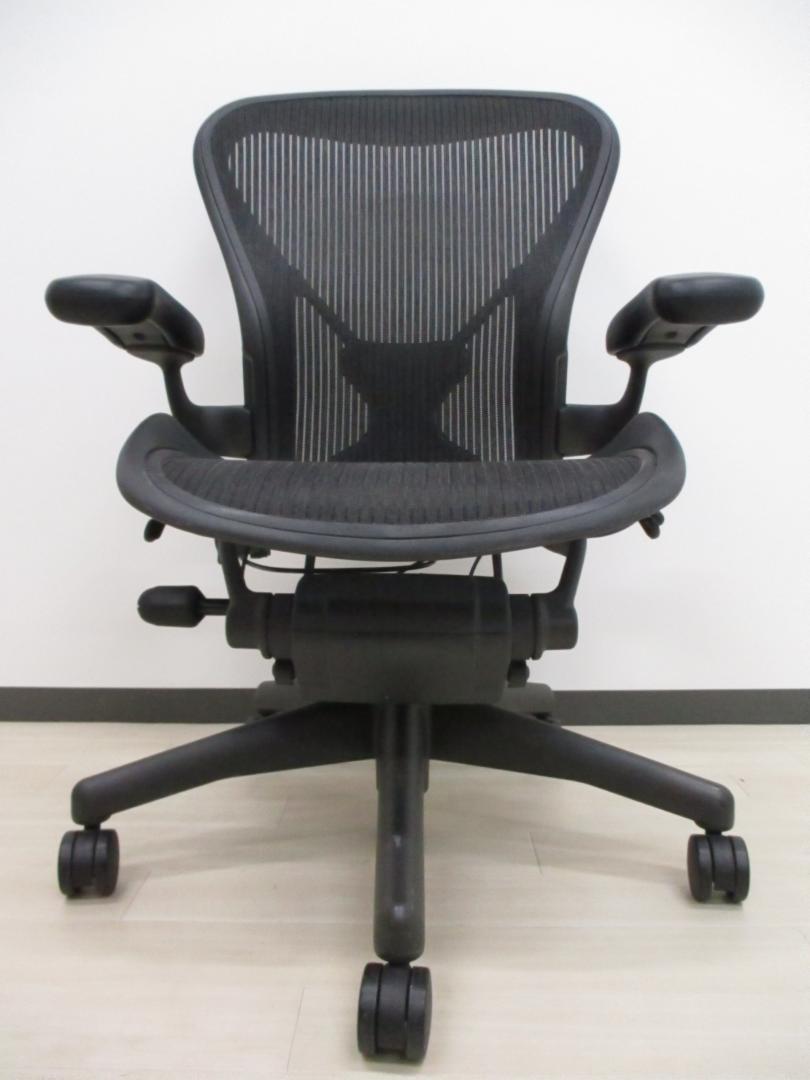 【★状態イマイチのためお安く!】■ハーマンミラー製 アーロンチェア Bサイズ 固定肘 ※キズあり・ランバーサポート無・昇降ガス圧弱めのためお安く!【訳あり特価品】