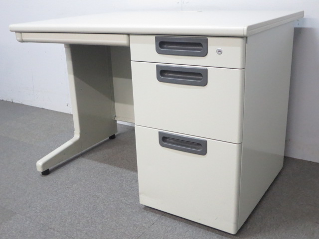 ※奥行要確認!【収納とワークスペースの両立!横幅1000㎜サイズ!】■プラス(PLUS) LAデスクシリーズ 片袖机 W1000×D600㎜ ■ニューグレー ■シリンダー錠【2508】弊社使用欄【A01031273】