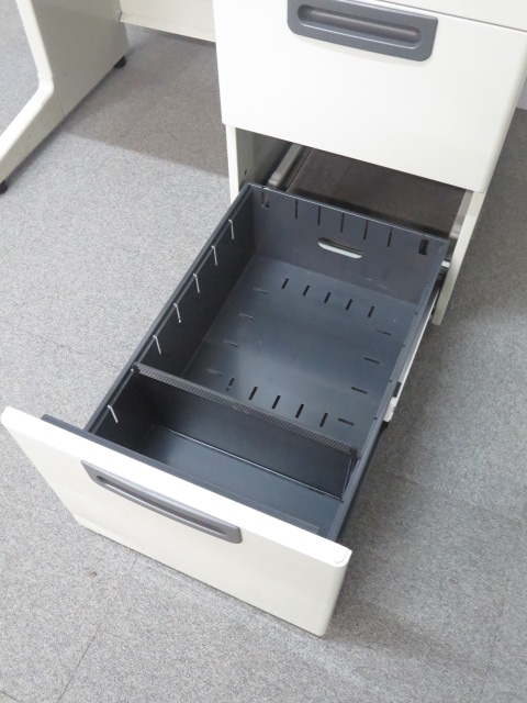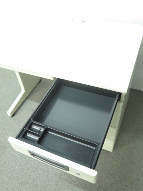 黒い取っ手が特徴的ですが、オーソドックスな片袖机です。