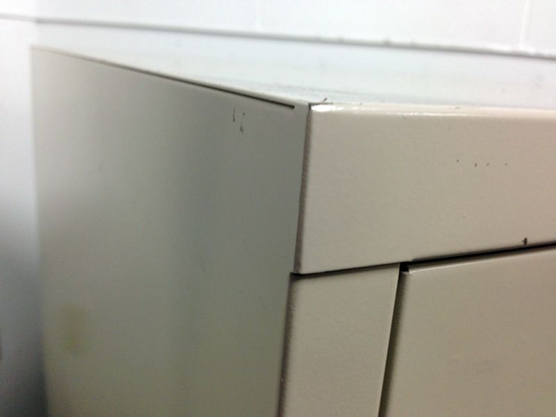 - 多数不具合あり引出の開閉不可、施錠不可、棚板無しといったその書庫の本来の効用を果たすための機能以外の多数が使用不可(例、扉、引出の開閉がしづらいなどがある。 )