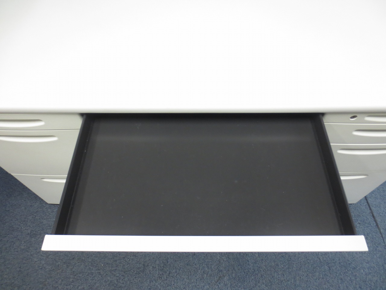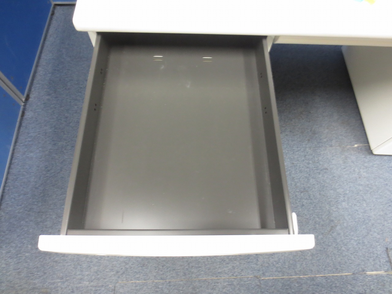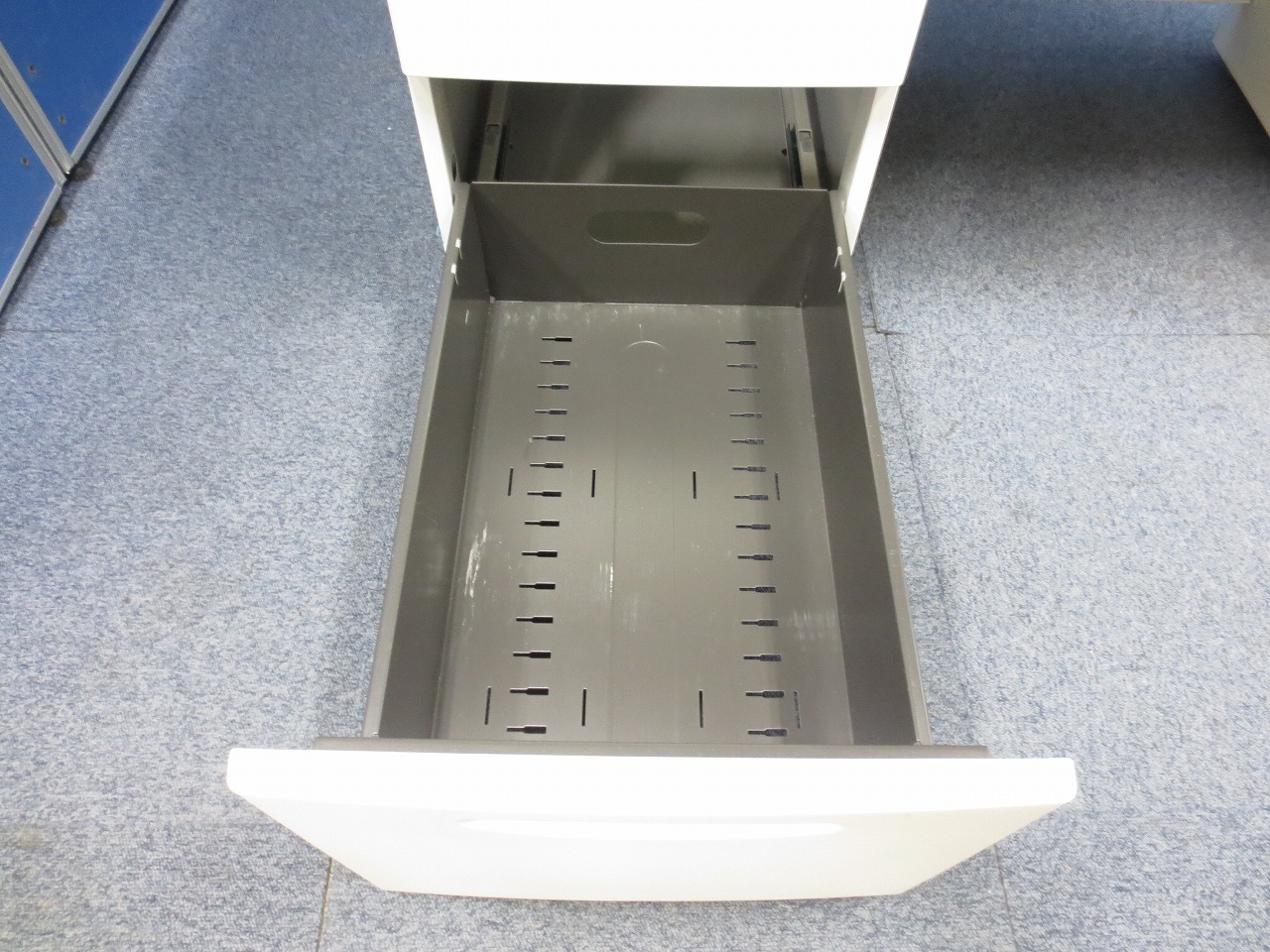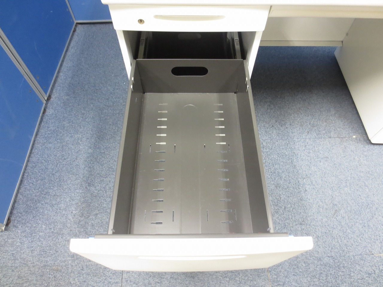 - 袖机のワゴンは、最下段がロング引出しになっており、従来より収納力120%アップ。