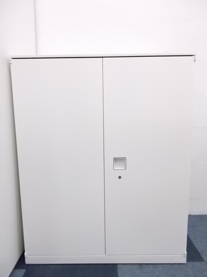 【オフィスの書類をスッキリ整理!取っ手がどの方向からでも開くマルチハンドルが人気!】■オカムラ(okamura)製 レクトラインシリーズ ローキャビネット 両開き書庫 H1250㎜ ■ホワイト ■シリンダー錠