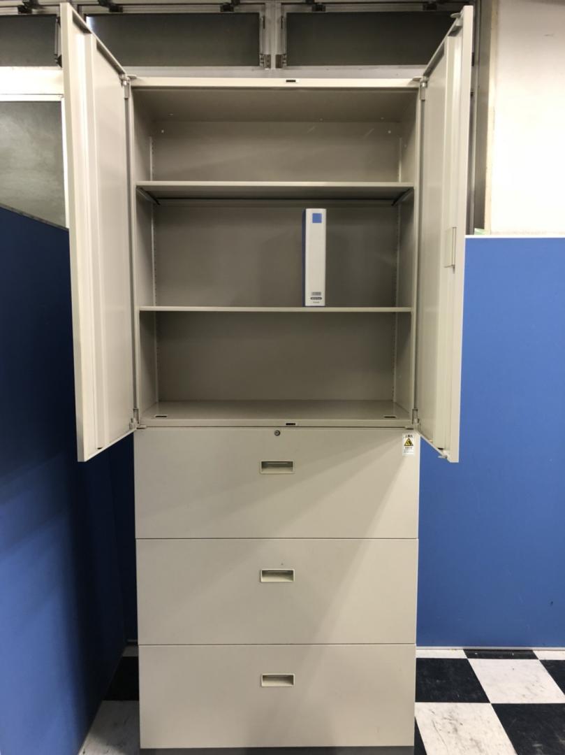 【限定1台】鍵壊れおつとめ品 両開き+3段ラテラルのコクヨ定番書庫セット!入れる書類によって上段、下段を決めて入れられますね!【中古オフィス家具】【さいたま市】- 埼玉本店