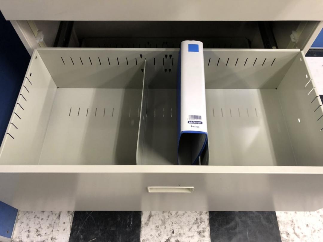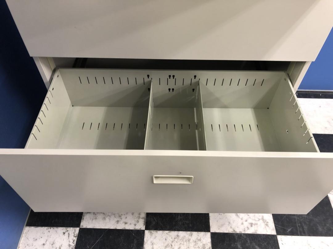 - 一部不具合ありそ引出の開閉不可、施錠不可、棚板無しといったの書庫の本来の効用を果たすための機能以外の一部が使用不可(例、扉、引出の開閉がしづらいなどがある。 )