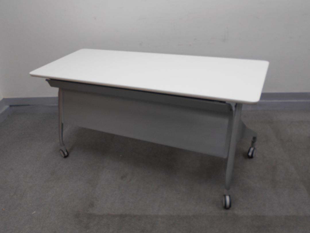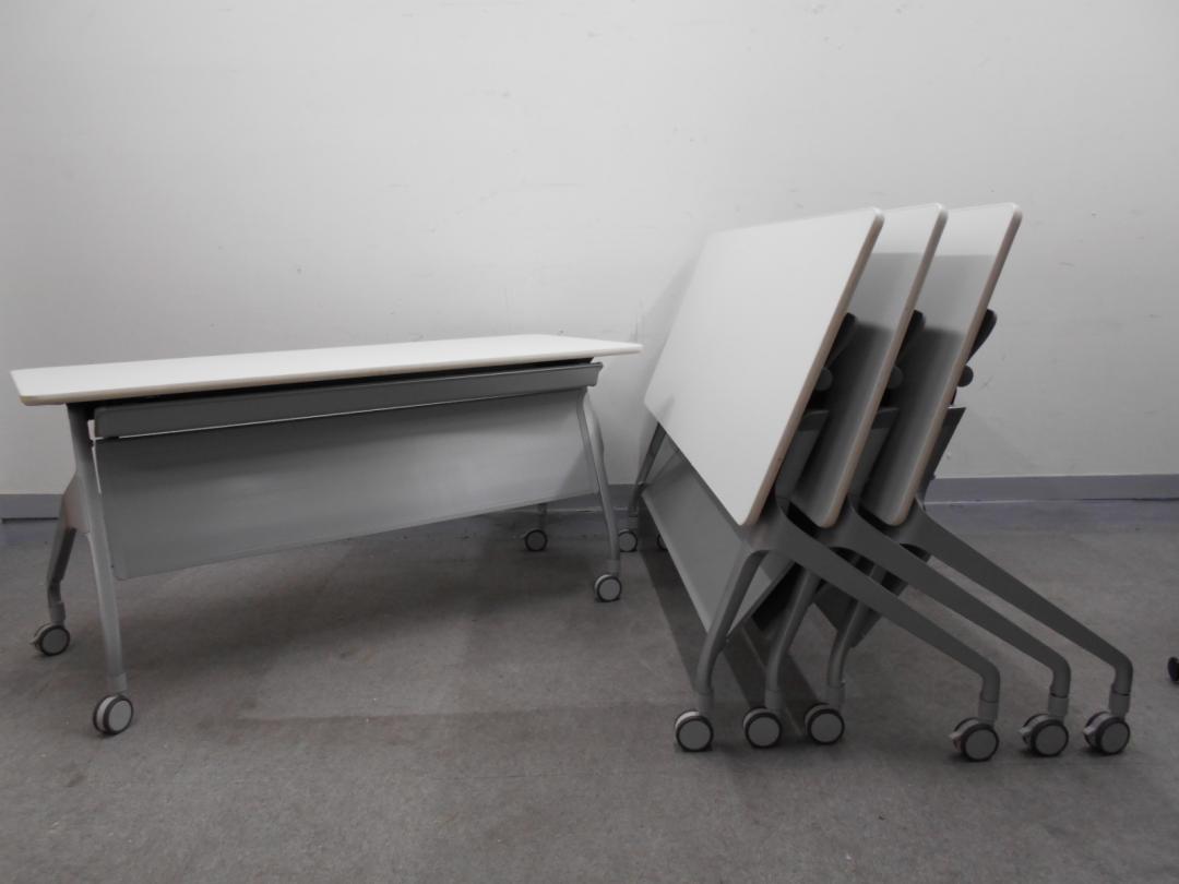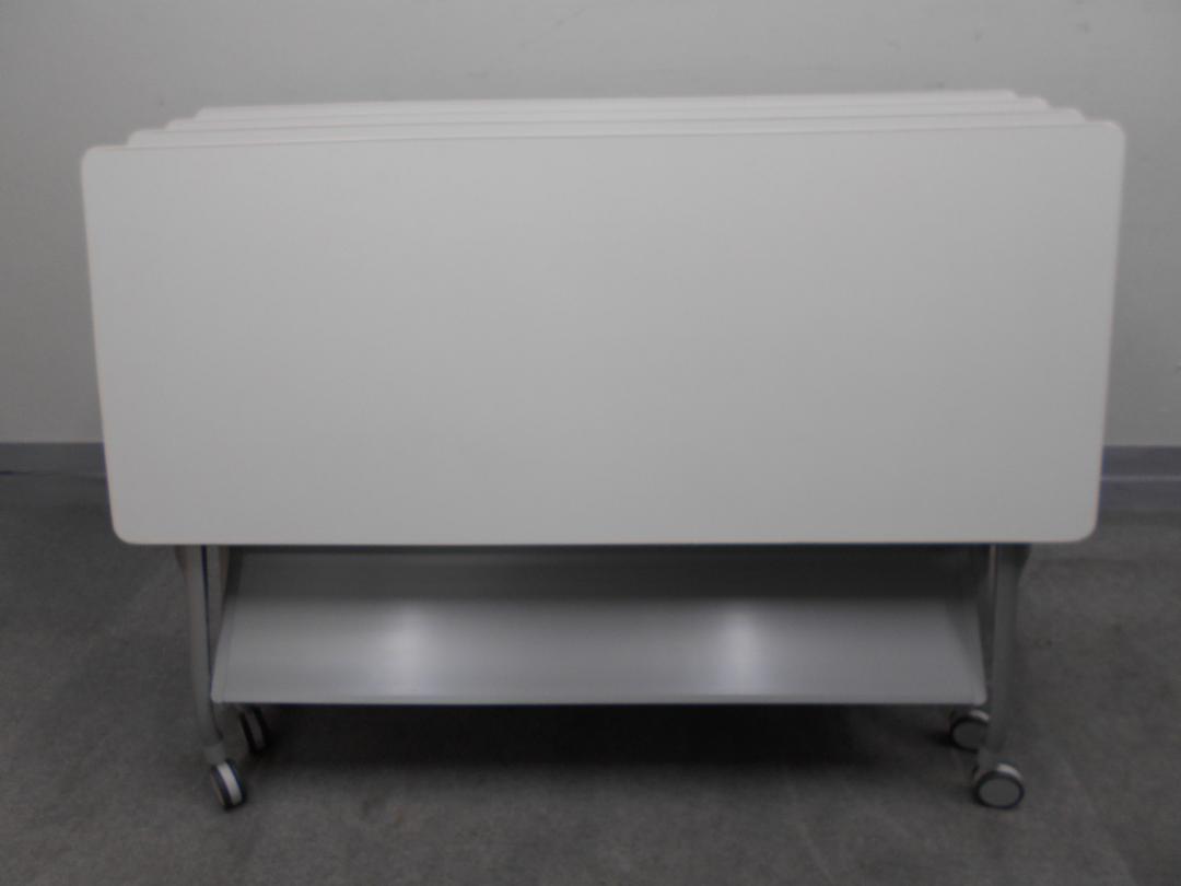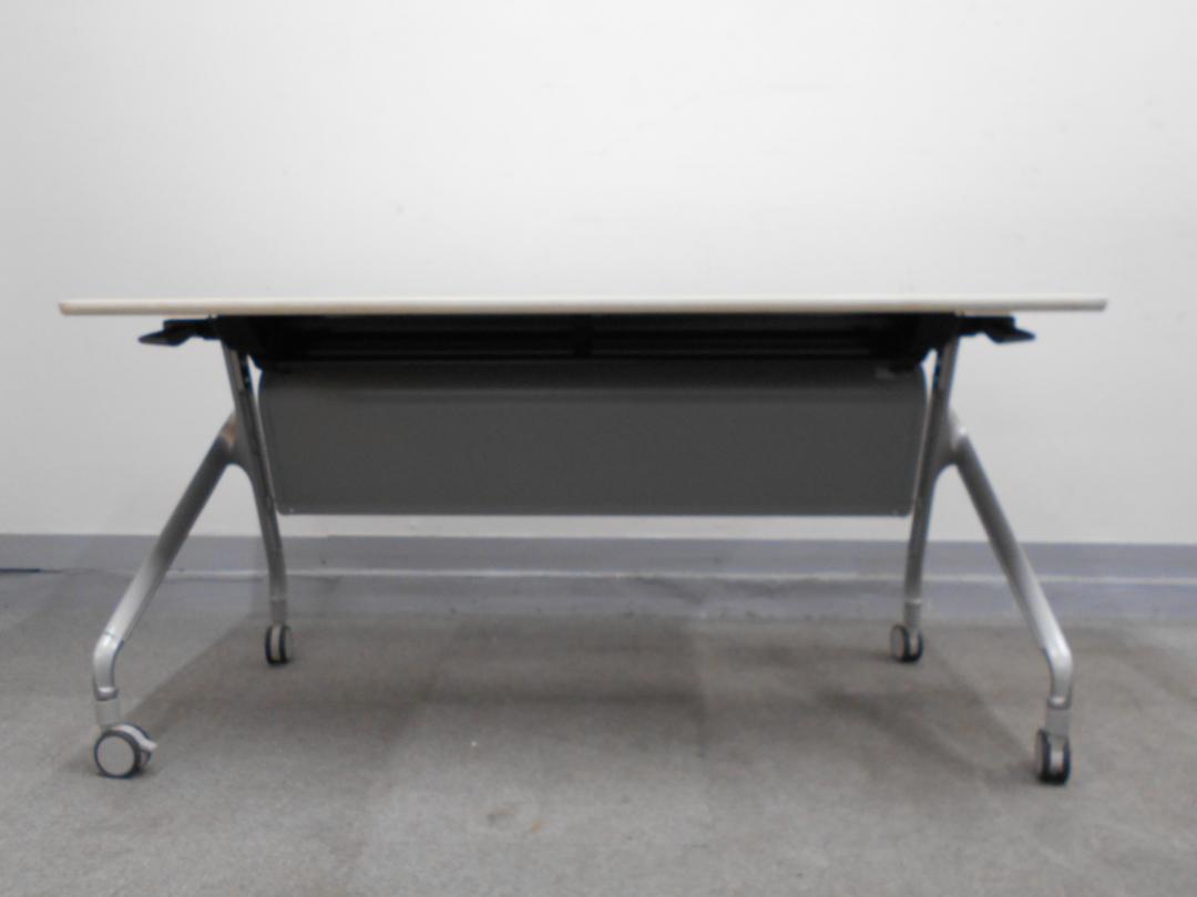 【KS】[状態良好]ミーティング、セミナースペースにお勧め! フラップ式テーブル 幅1500㎜ キャスター付き[不要時は天板折りたたんで収納可能]- 茨城南店