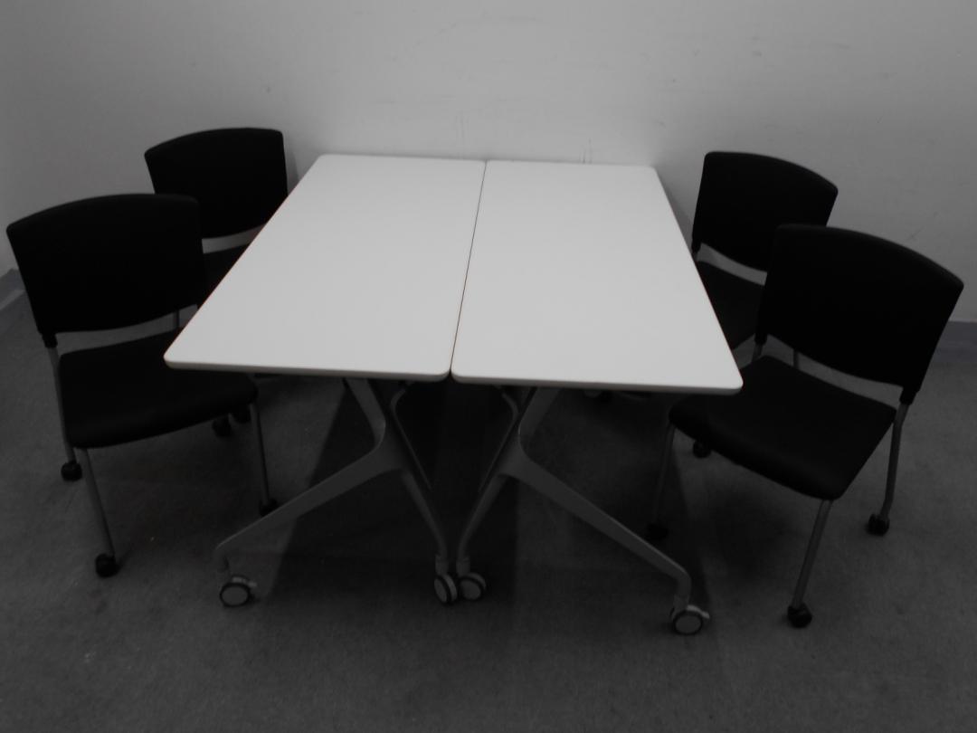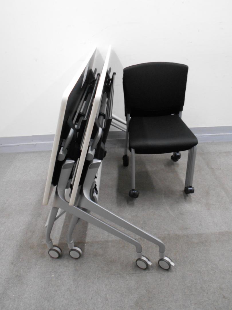 【KS】[4名会議セット]コクヨ製 スタックテーブル 幅1800㎜ 2台&キャスター付き スタッキングチェア 4脚[セミナー仕様のレイアウトにも変更可能]- 茨城南店