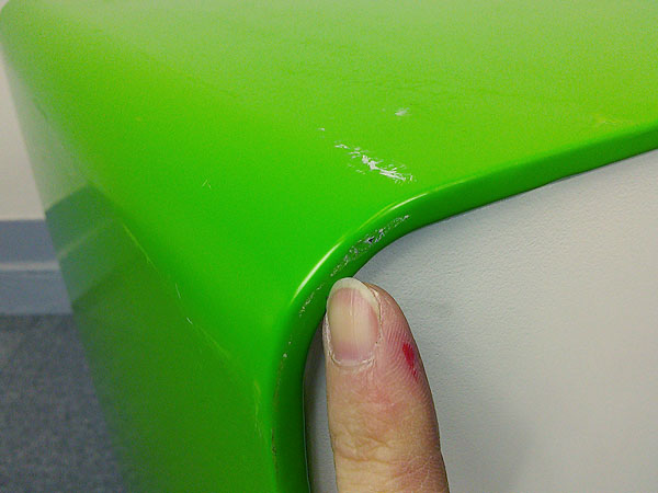 - かなり強い濃い黄ばみ・変色が商品全体にある。(例、天板、正面、背後、サイド部分にある。)
