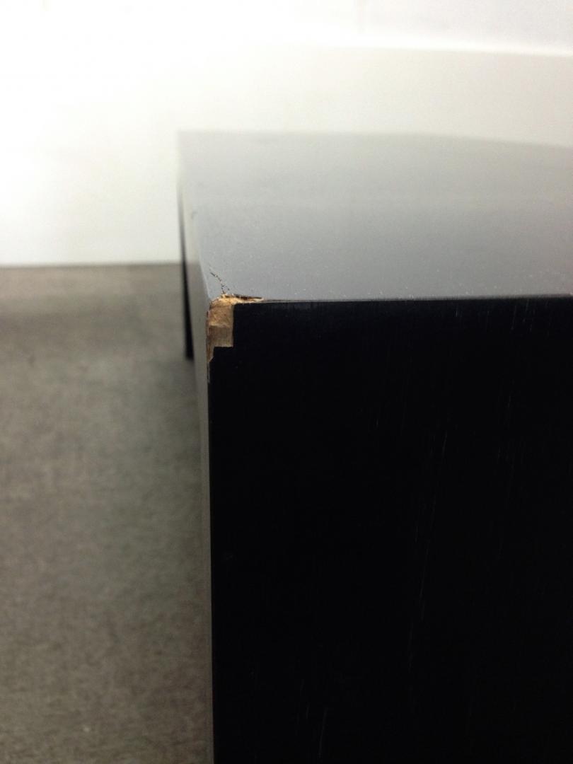 - 目立つ箇所複数ありソファの場合、深い破け、ホツレ、へたり、しわ等が多数ある。(例、背もたれ、肘かけ、座面等にある。)センターテーブルの場合、深い傷・凹みが商>品全体にある。(例、天板、脚にある。)