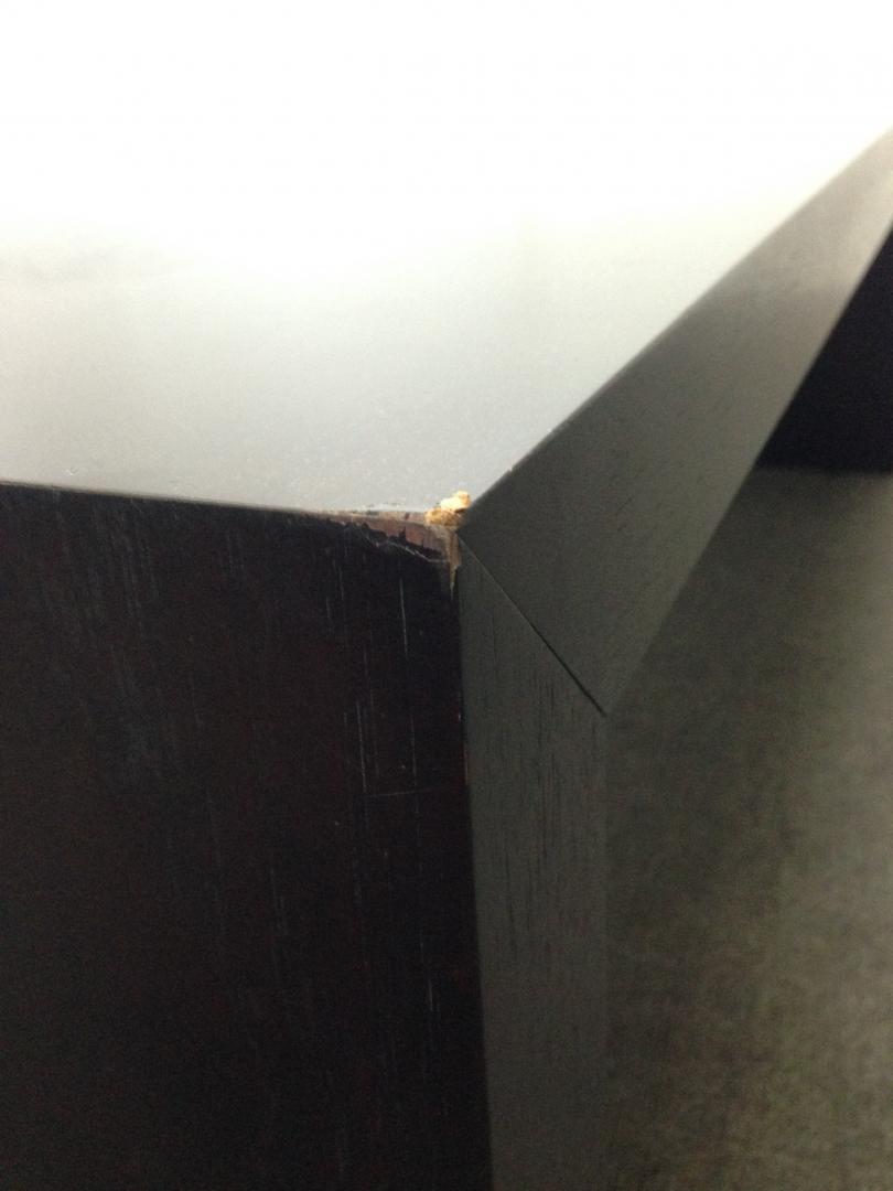 - かなり強い濃い黄ばみ・変色が商品全体にある。 (例:三人用ソファ、二人用ソファ、一人用ソファの場合、背もたれ、肘かけ、座面等、センターテーブルの場合、天板、 脚にある。)