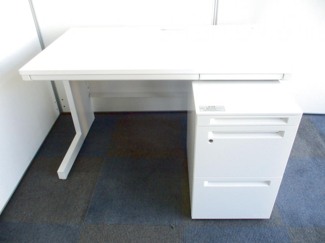 【机とワゴンのお得なセット品】ワイヤリング機能に優れたタイプの平机【希少なホワイトでオフィスを華やかに!】- 千葉店