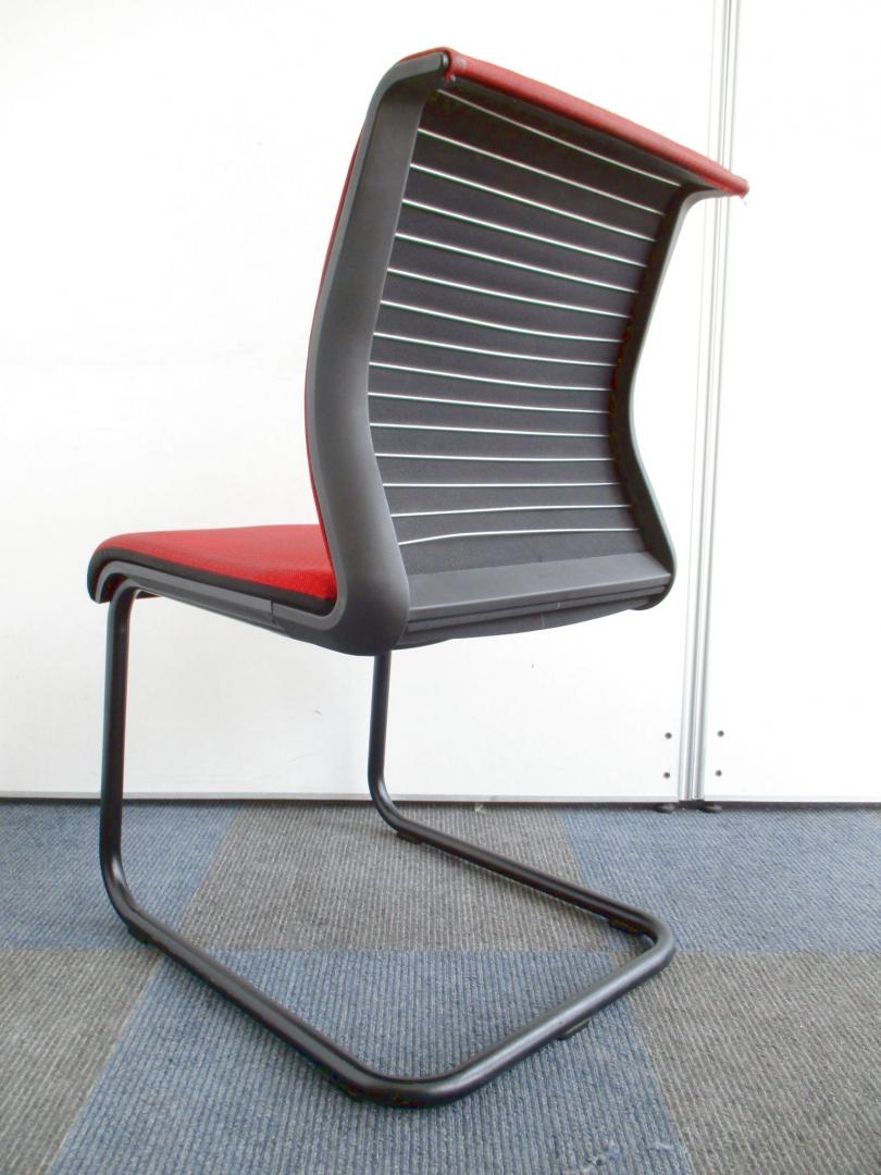 【珍しいタイプ】燃えるような赤柄【情熱を感じさせるカンチレバー式のミーティングチェアです。】【β】- 千葉店