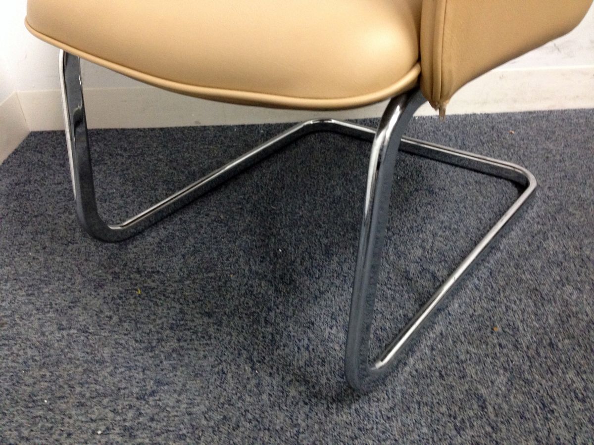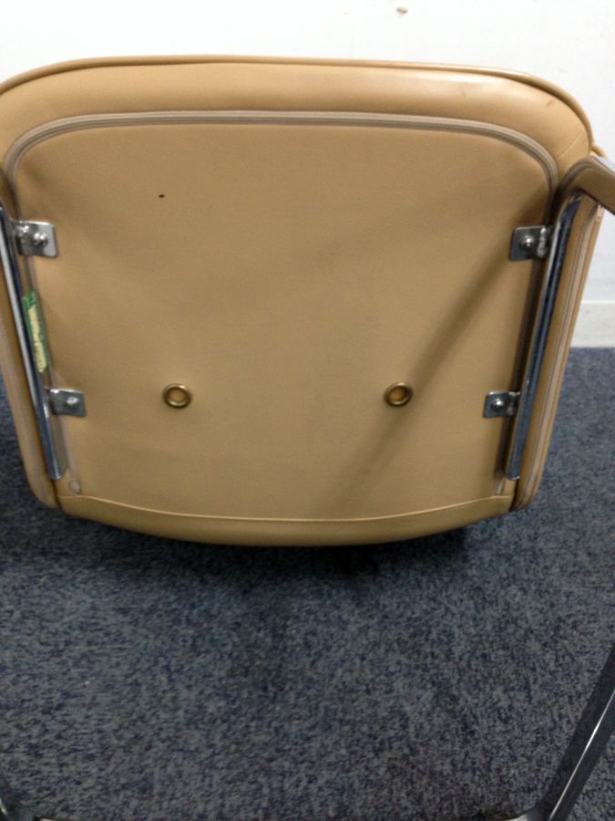 - かなり強い濃い黄ばみ・変色が商品全体にある。(例、座面・背もたれ、脚部等にある。)