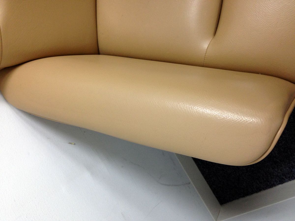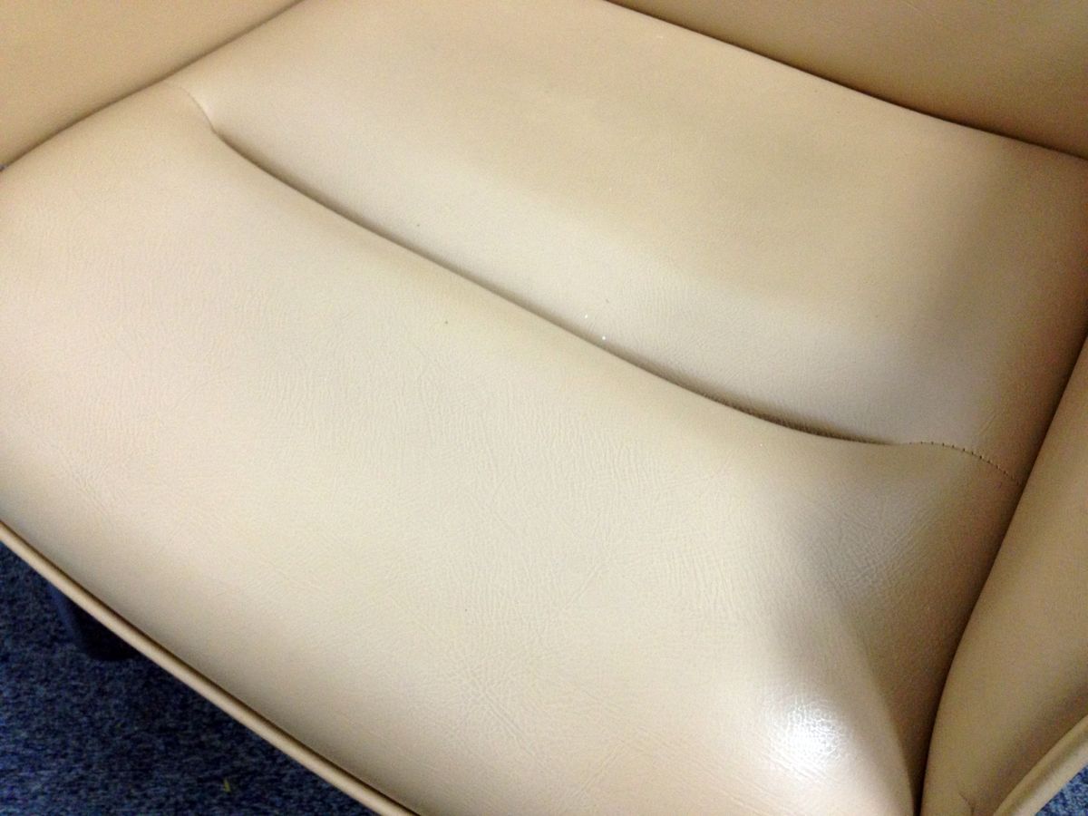 - あり黄ばみ・変色が広い範囲にうっすらある、または濃い黄ばみ・変色が一部ある。(例、座面・背もたれ、脚部等にある。)