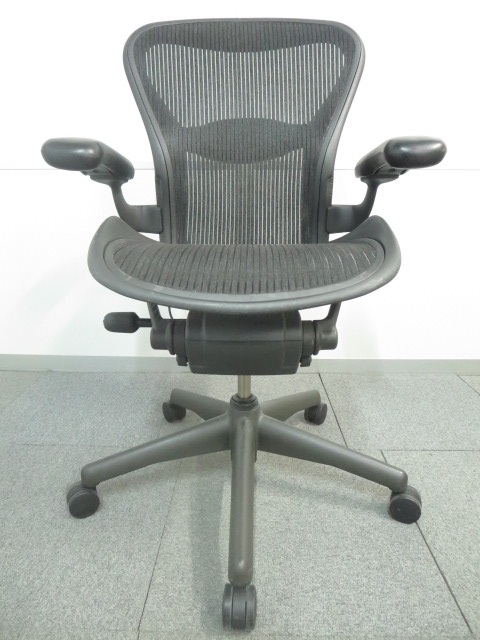 【スタイリッシュなデザインに快適な座り心地!】■ハーマンミラー アーロンチェア Bサイズ 固定肘 ランバーサポート無 ※キズあり・劣化ありのためお安く!【A01029474】