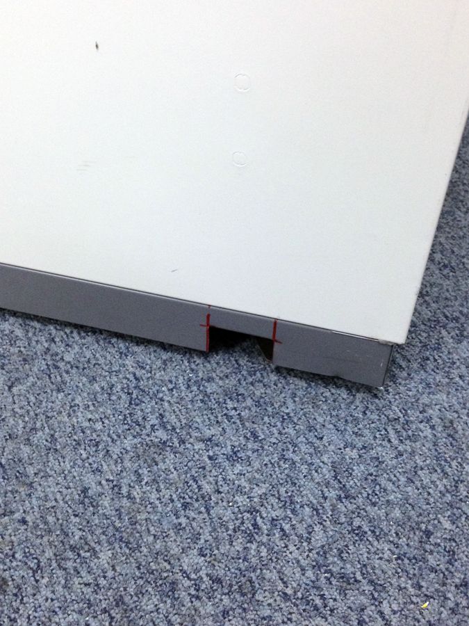 - 壊れている引出の開閉不可、施錠不可、棚板無しといったその書庫の本来の効用を果たすための機能に不具合がある(例、扉、引出の開閉が行えない。)