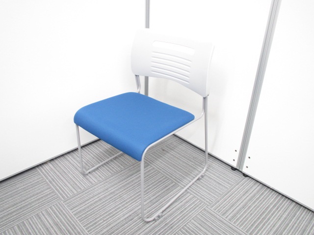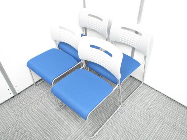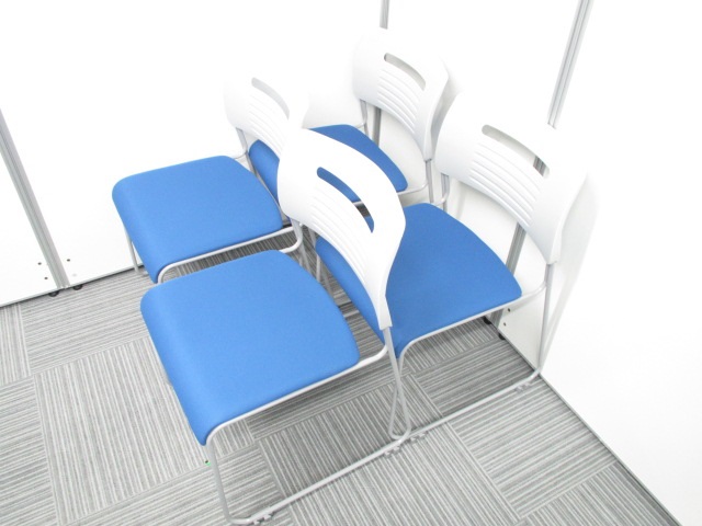 【4脚セット】ミーティングチェア スタッキングタイプ 座面:ブルー 場所取らず収納できます。新古