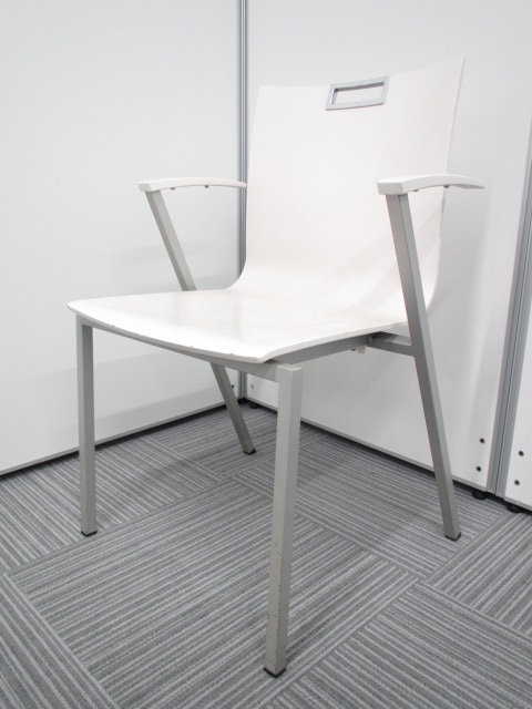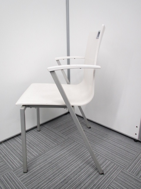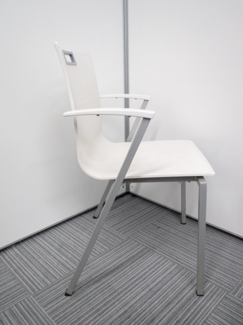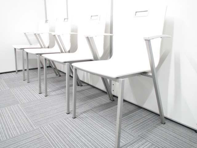 【4脚セット】ミーティングチェア スタッキングタイプ ホワイト(木製)ー 場所取らず収納できます。 ※一部欠けあり商品有り。- 在庫数