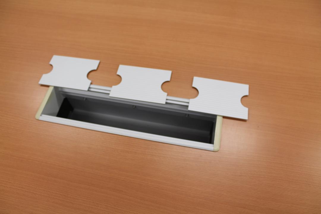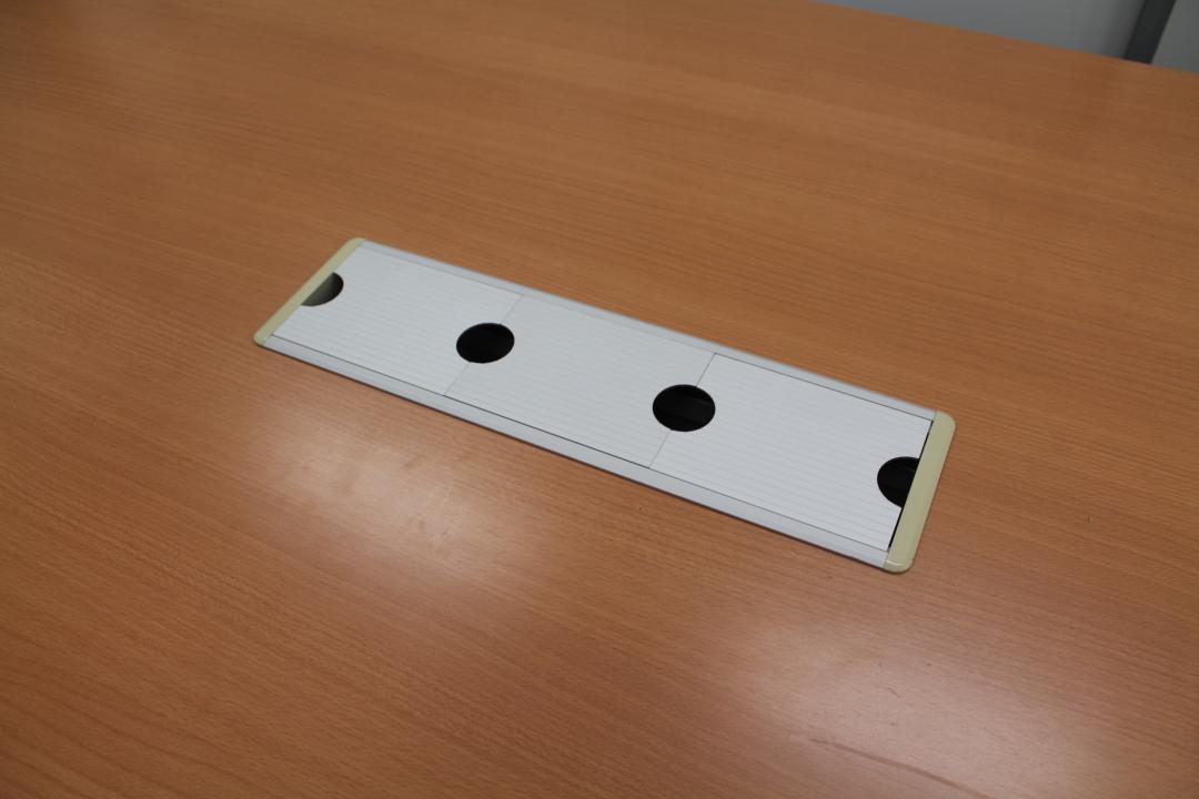 【店頭に展示してあります!!】濃い木目調の重厚感あるミーティングテーブル!!【配線カバー付き】- 在庫数