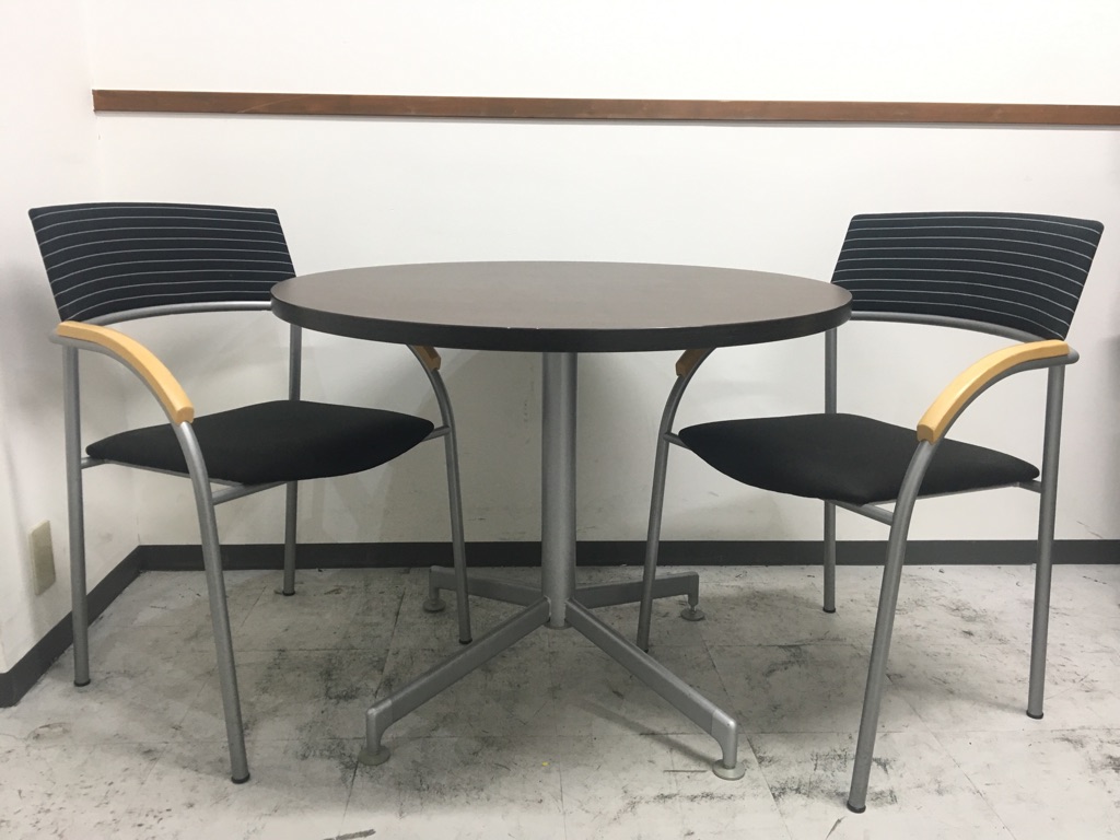 【1台限定】濃いブラウンのお洒落な丸テーブル【商談・休憩スペース】- 新大阪店