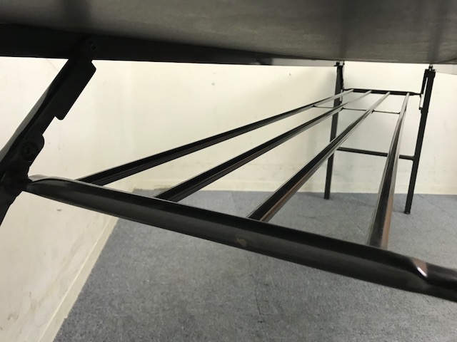 - 一部不具合あり天板歪み、アジャスター無し、キャスター使用不可ようなそのテーブルの本来の効用を果たすための機能以外の一部が使用不可な状態。(例、キャスターロッ ク機能使用不可、棚板無し等がある。)