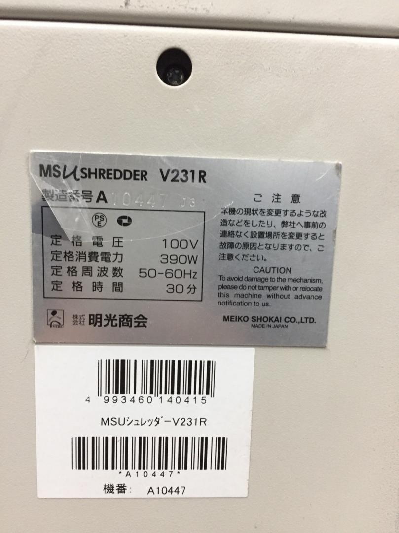 【中古】 MS-V231-R 明光商会 シュレッダー 216461