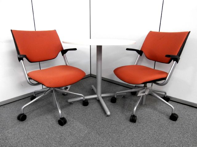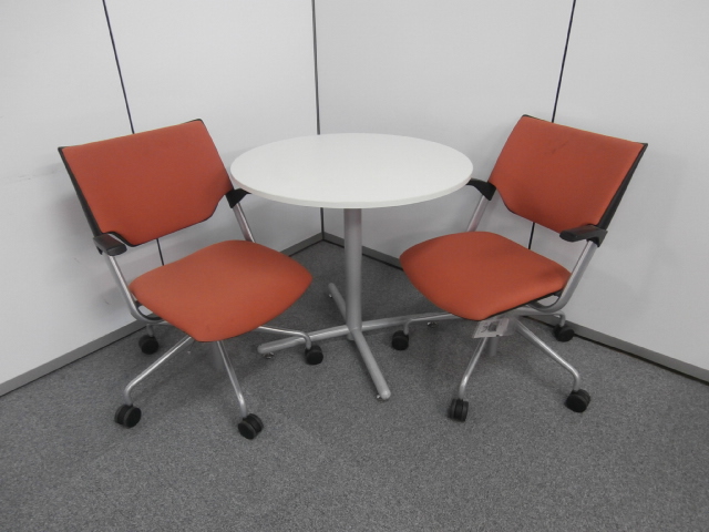 ■イトーキ製ミーティングチェア(レクシブチェア)とその他メーカー丸テーブルのセット商品