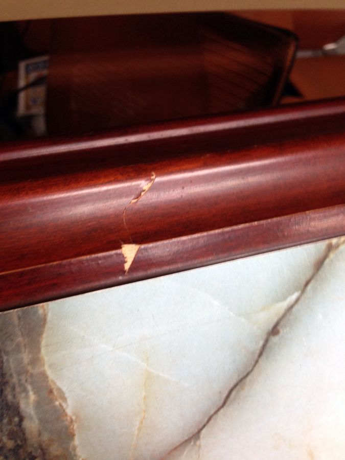 - かなり強い濃い黄ばみ・変色が商品全体にある。 (例:三人用ソファ、二人用ソファ、一人用ソファの場合、背もたれ、肘かけ、座面等、センターテーブルの場合、天板、 脚にある。)
