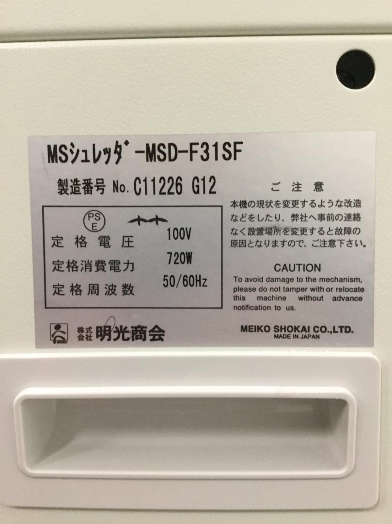 【中古】 MSD-F31SF 明光商会 シュレッダー 216735