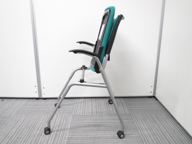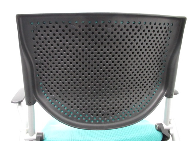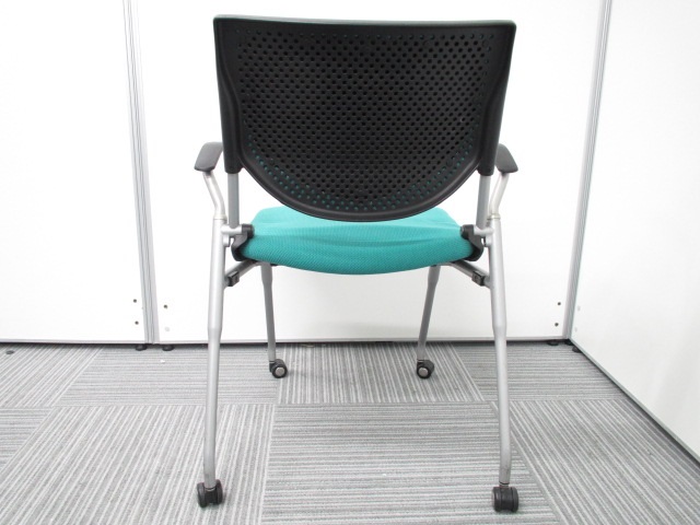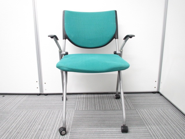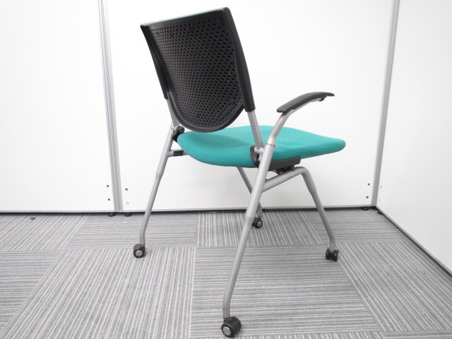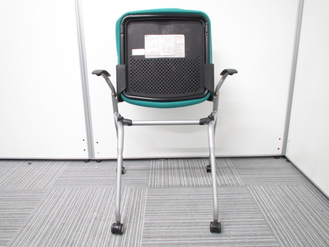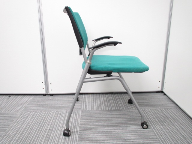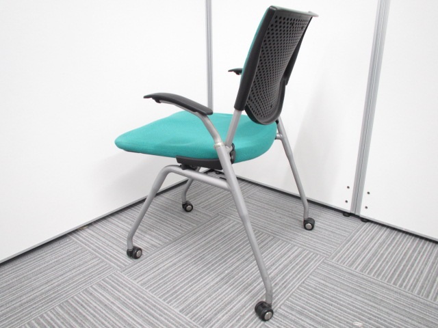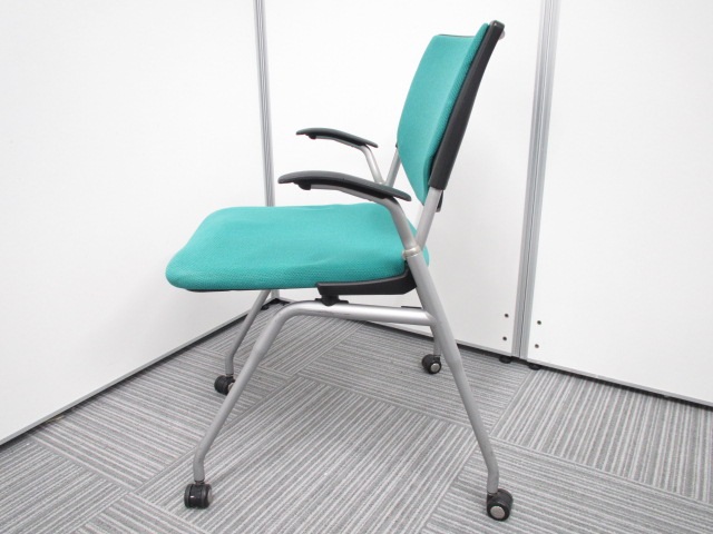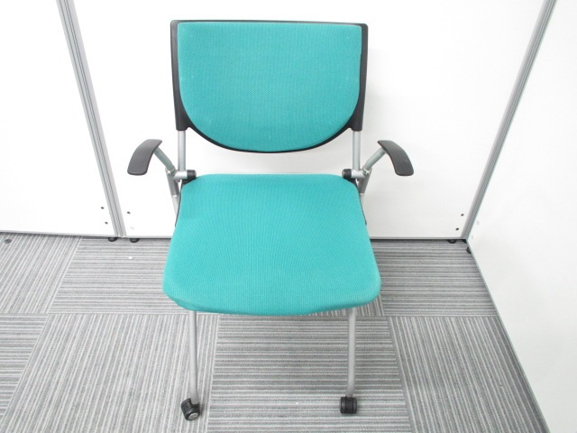 【オカムラ製王道ネスティング肘付チェア!】明るいグリーンが魅力的なプロスタックチェア!- 在庫数