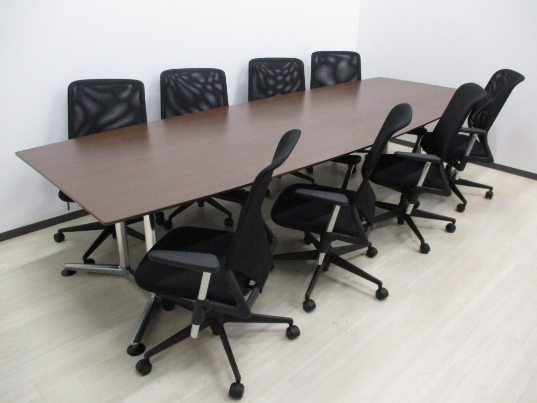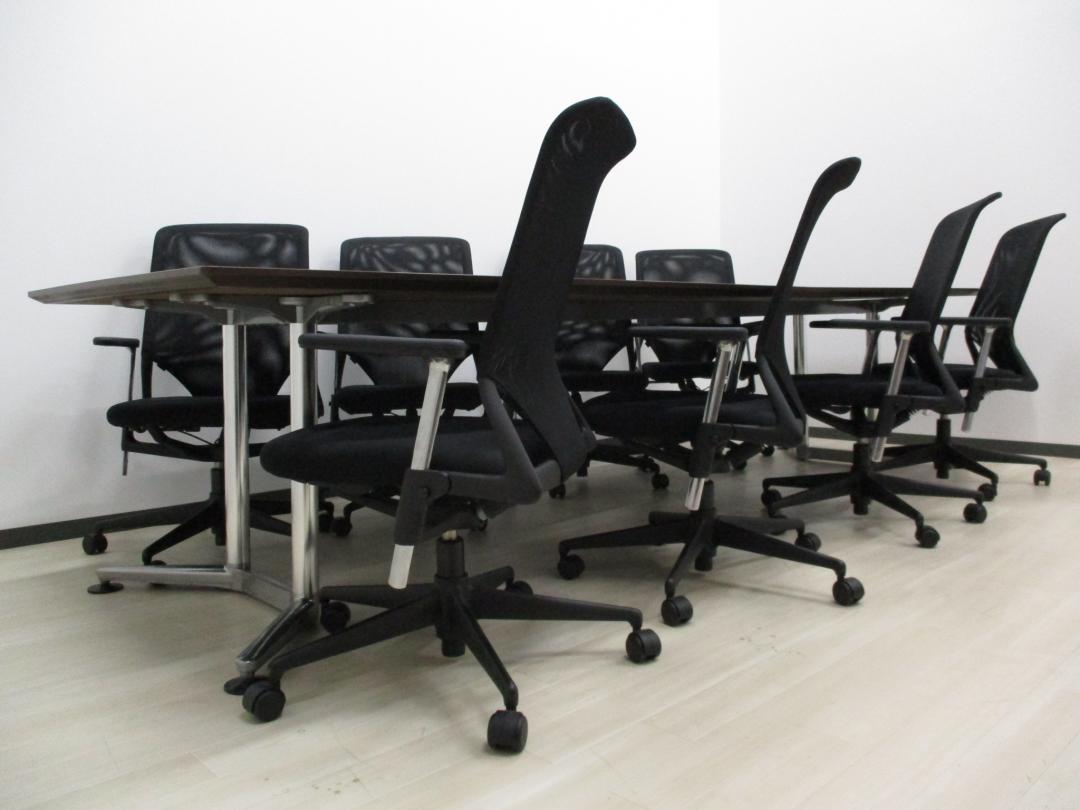 【役員会議などにも◎】【限定1セット】■重厚感溢れる会議用セット(メダチェア+ラティオテーブル)【舟形】- つくば店