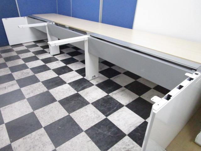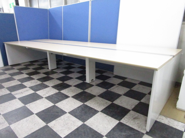 【増員や特定の席を設けないオフィスにぴったり!】今、人気のシリーズ!オカムラのフリーアドレスデスクです!!【幅4200】幅1400天板×6枚 ※ビーム:シルバー、脚:ホワイト【中古オフィス家具】【さいたま市】- 埼玉本店
