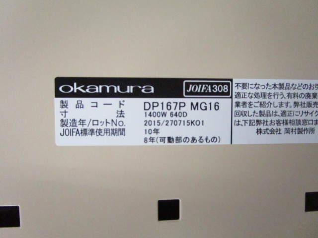 【中古】 プロユニットフリーウェイ DP167P MG16 オカムラ/okamura フリーアドレスデスク 217107