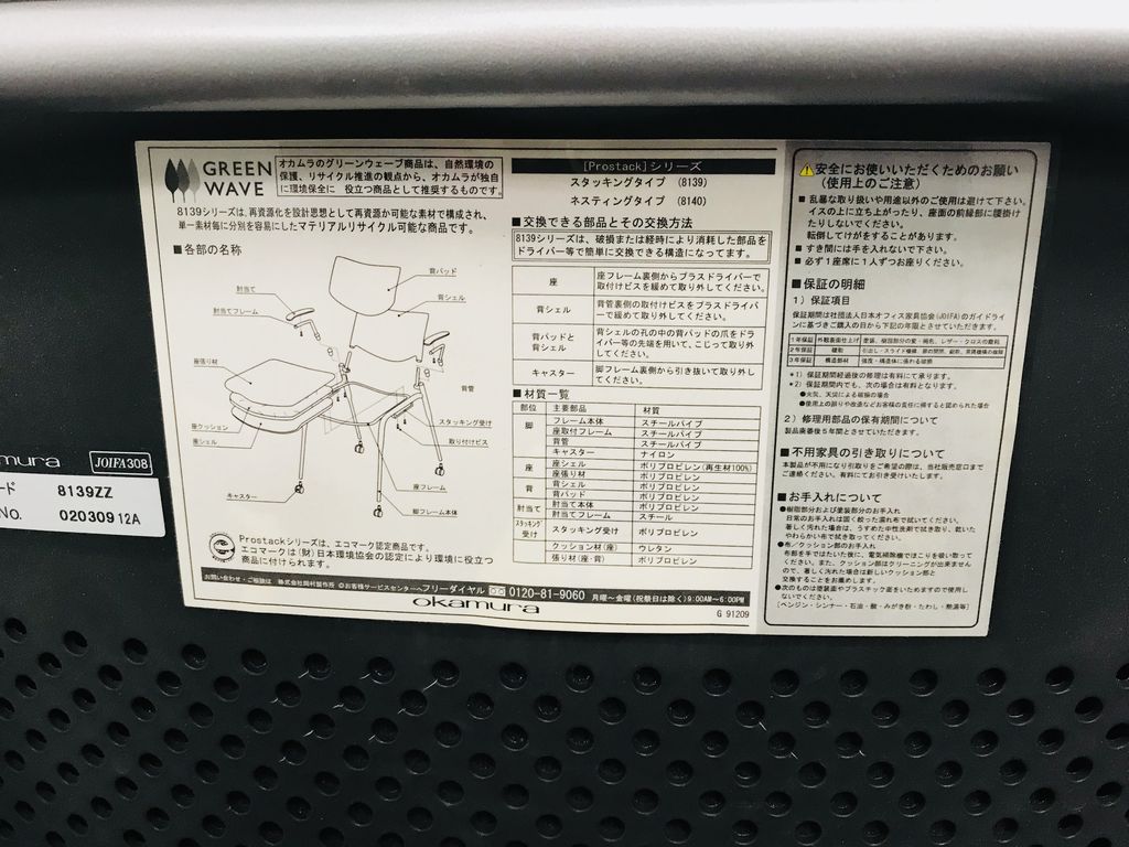 【中古】 プロスタック 8139ZZ オカムラ/okamura スタッキングチェア 217135