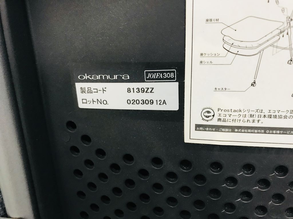 【4脚入荷】オカムラ(okamura)プロスタックチェア スタッキングタイプ ■色:座面グレー【2509】弊社使用欄【A01034926】