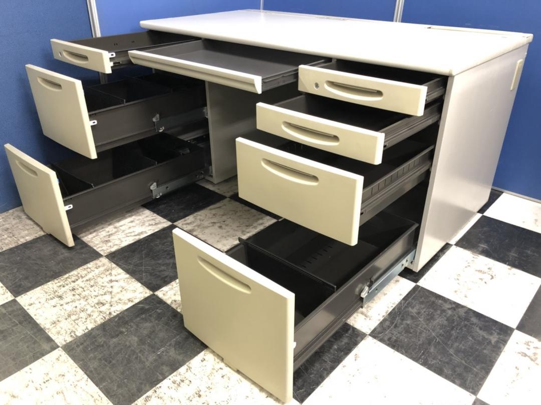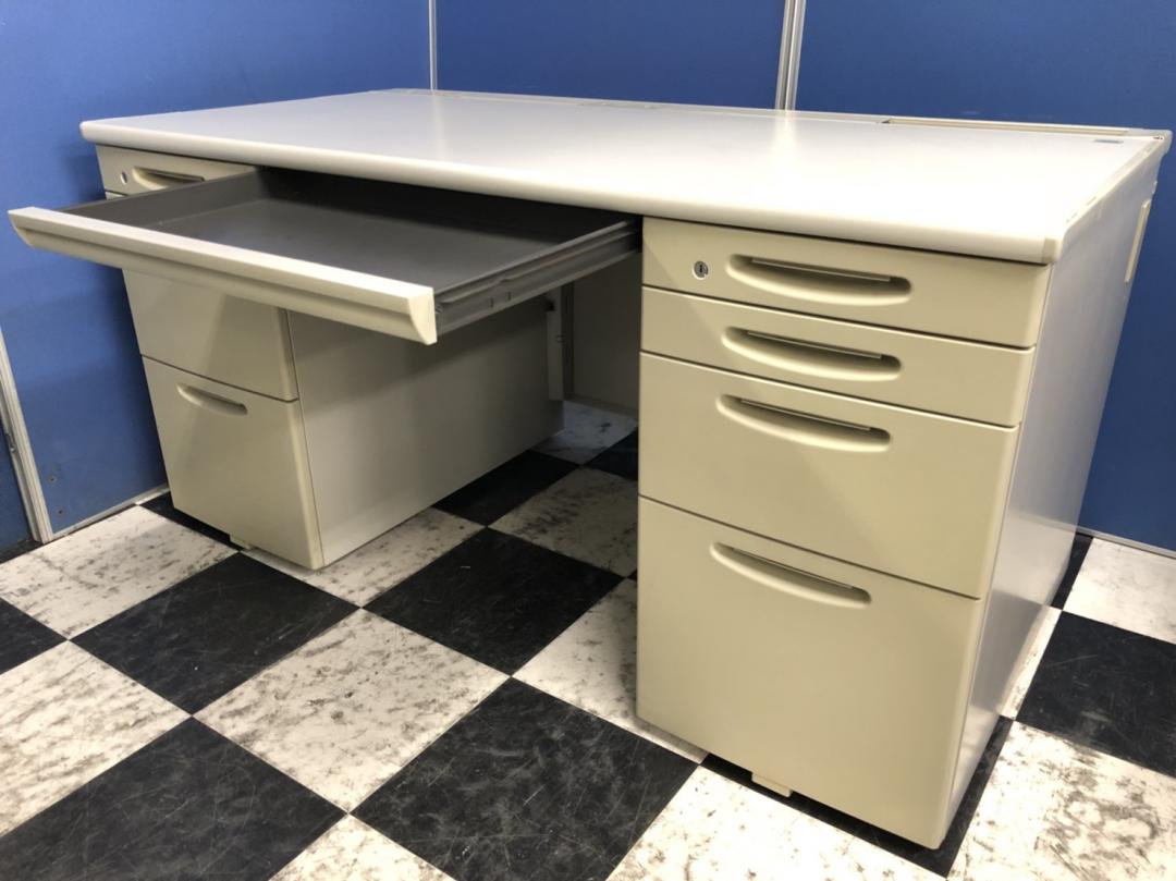 【限定1台入荷致しました】【引き出しが日焼けしております】オフィスに求められる基本機能を追及したスタンダードデスク!配線取り回しもらくらくな両袖机です【中古オフィス家具】【さいたま市】- 埼玉本店