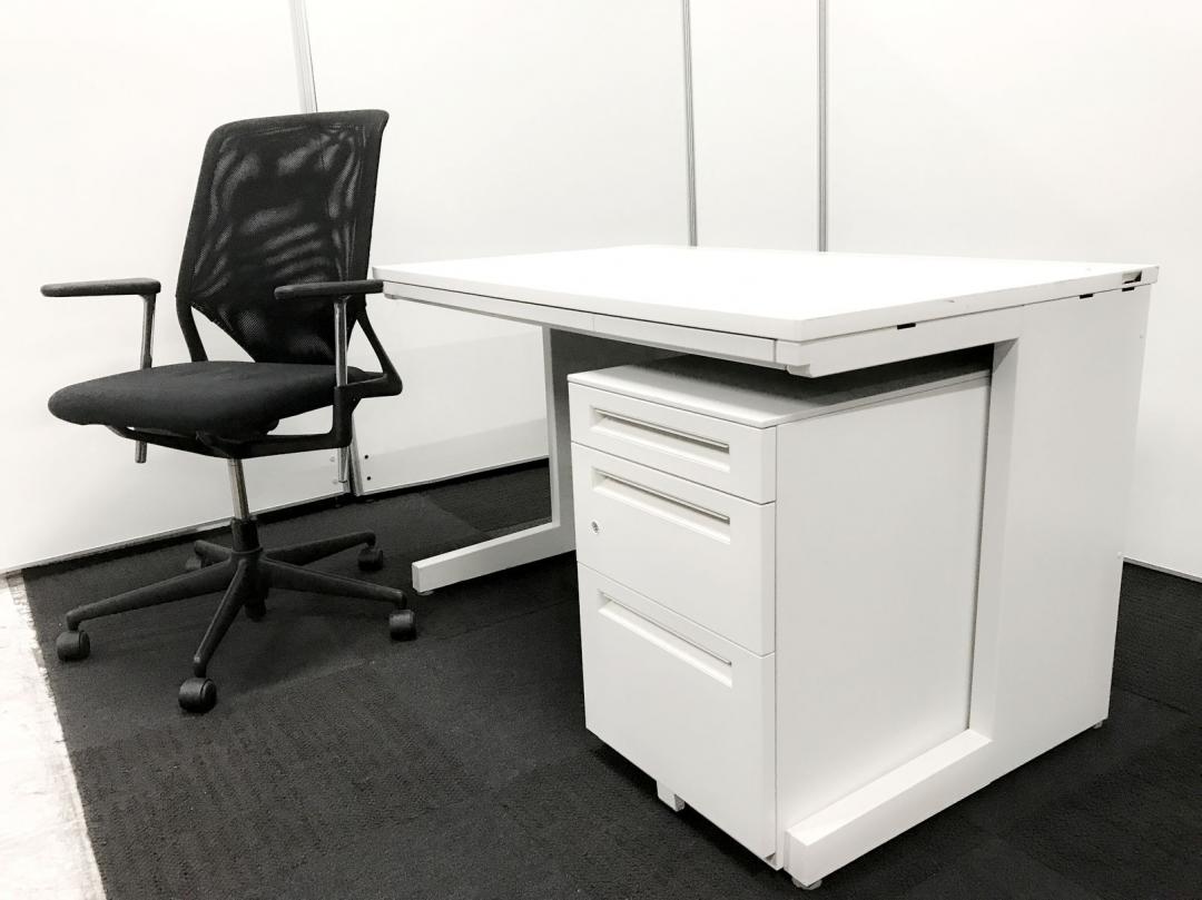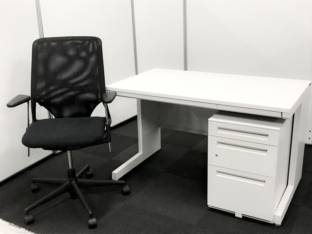 【引き出しつきデスクとワゴンの特別セット!】■内田洋行 スカエナシリーズ デスク+ワゴンセット ■横幅1200㎜×奥行き700 ■引き出しなし ■ホワイト 【中古でお得に買うなら品質の良いデスクを!】 ※ワゴンは在庫状況によって変動致します。
