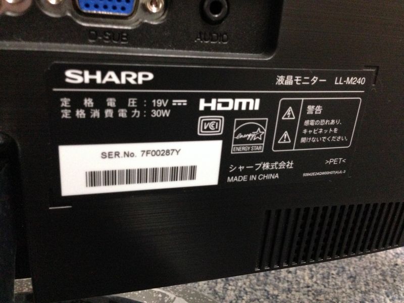 シャープ製・法人モデルの液晶モニターLL-M240が入荷しました!!