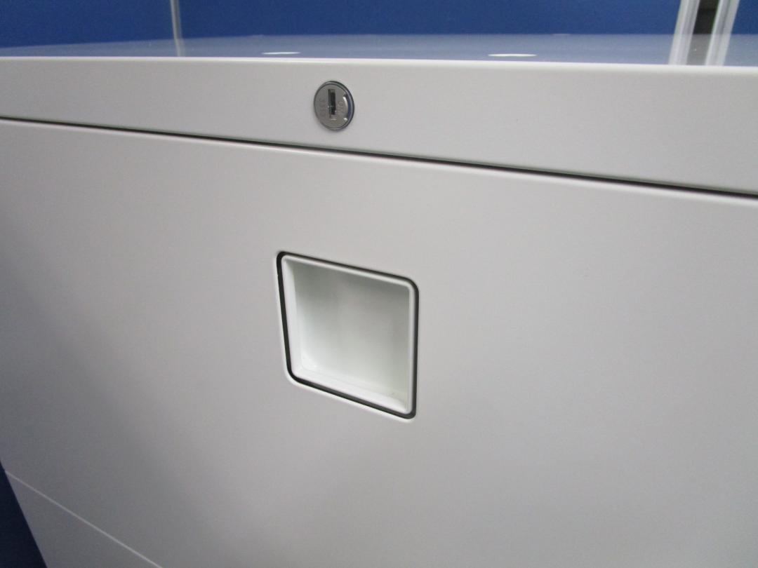 【使いやすさで選ぶならコレ!大容量の三段キャビネット】■オカムラ(Okamura)製 レクトラインシリーズ(Rectline) 3段ラテラル書庫 ローキャビネット ■天板付き ■シリンダー錠 ■ホワイト