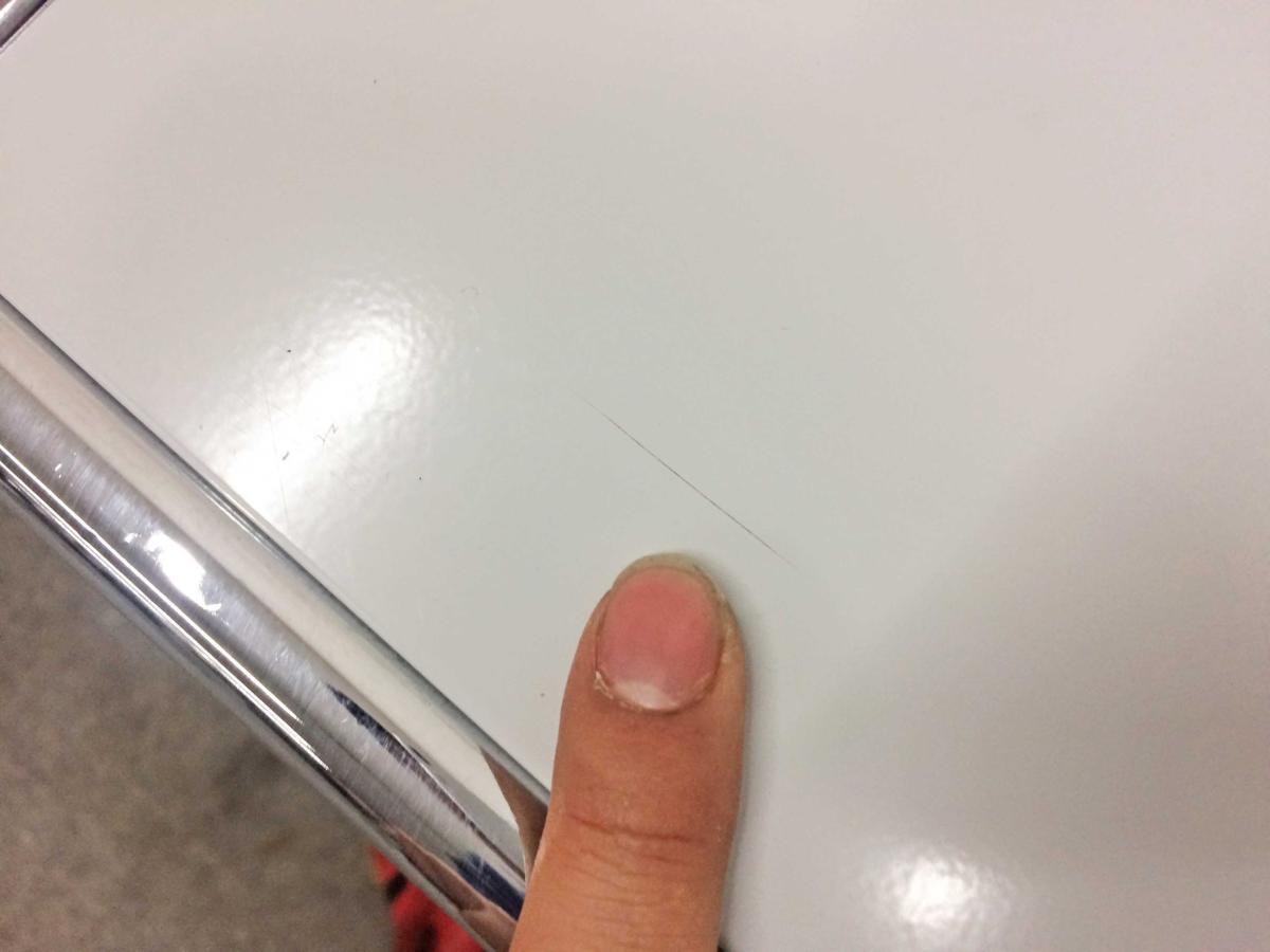 - あり黄ばみ・変色が広い範囲にうっすらある、または濃い黄ばみ・変色が一部ある。(例、天板、正面、背部、サイド部分にある。)