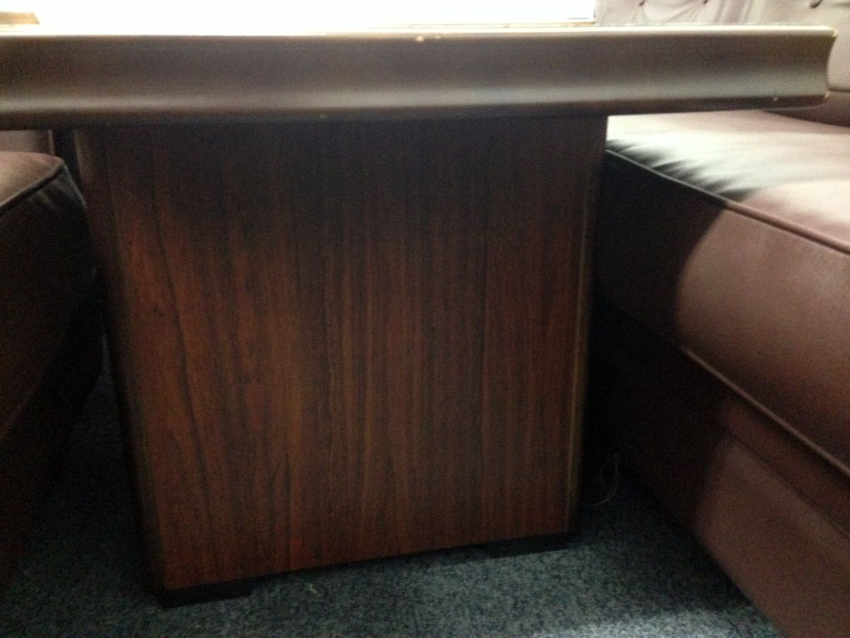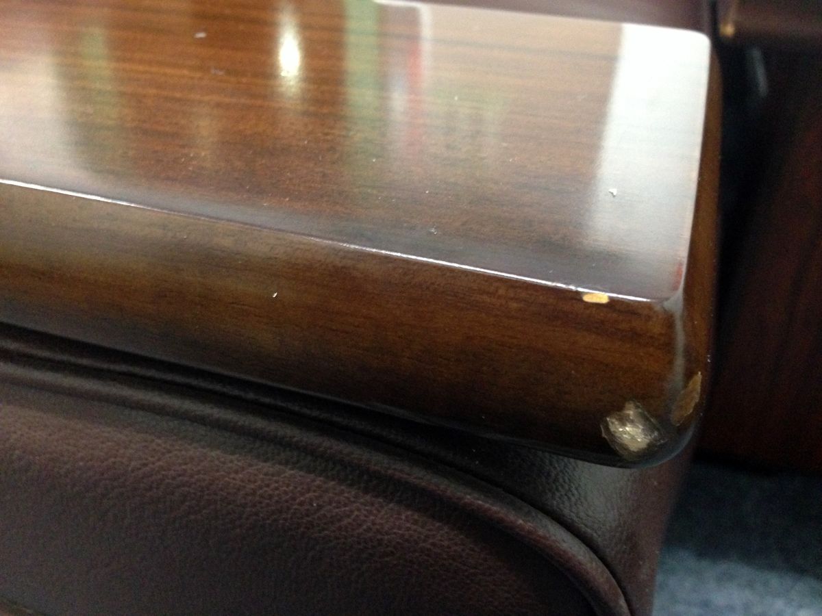 - あり黄ばみ・変色が広い範囲にうっすらある、または濃い黄ばみ・変色が一部ある。(例:三人用ソファ、二人用ソファ、一人用ソファの場合、背もたれ、肘かけ、座面等、 センターテーブルの場合、天板、脚にある。)