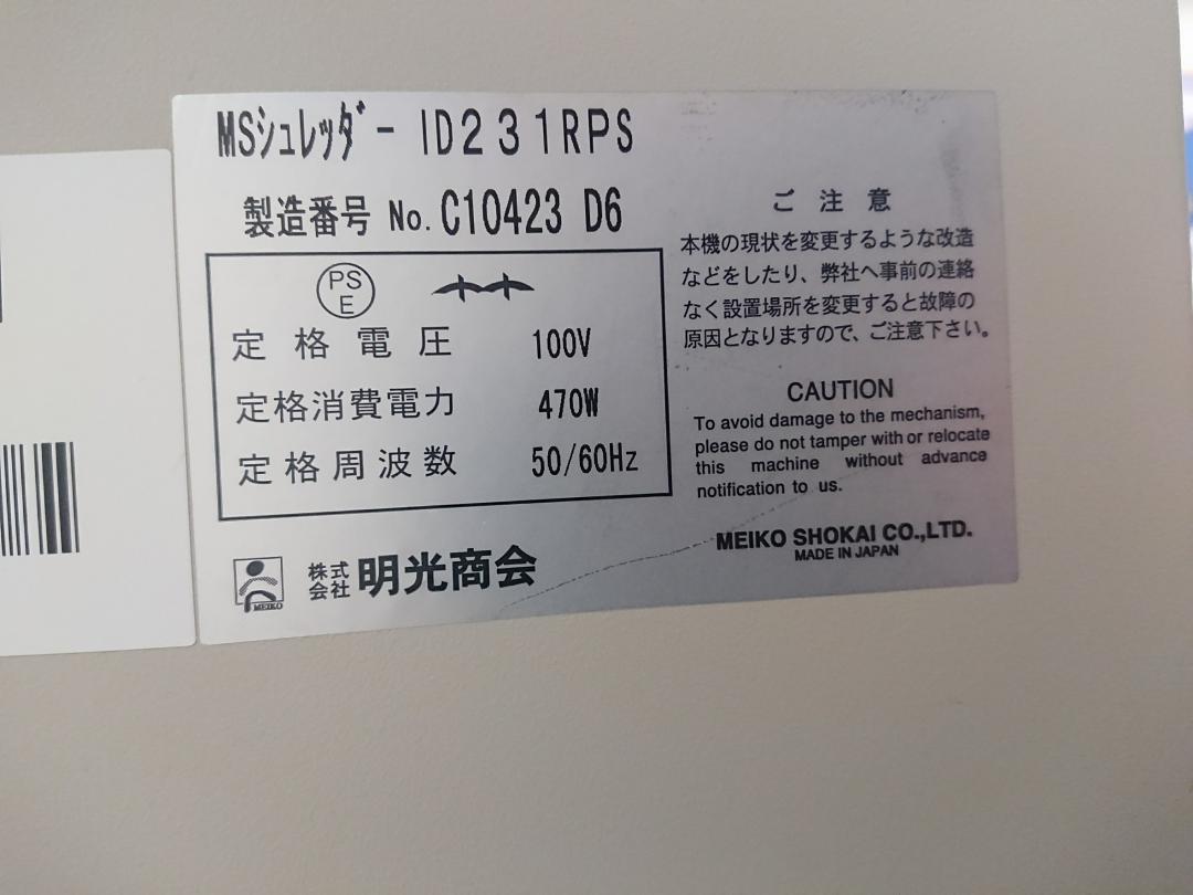【中古】 MS-ID231RPS 明光商会 シュレッダー 217711