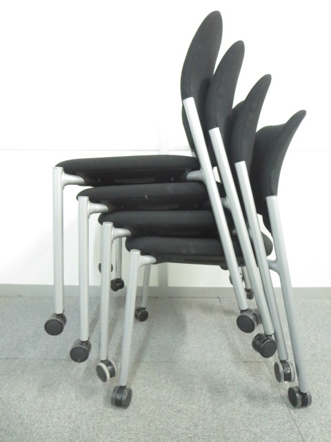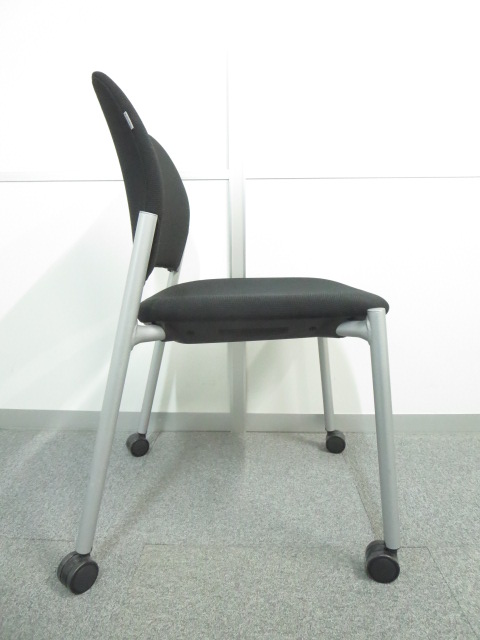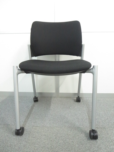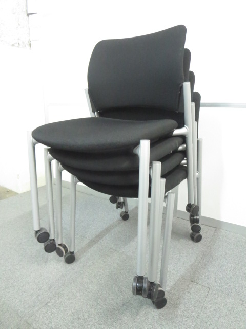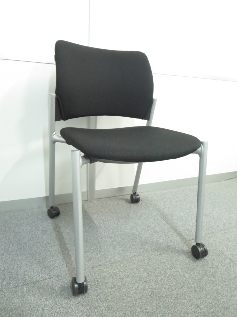 【長時間の会議にもオススメ!】■オカムラ製 スタッキングチェア ■ブラック キャスター付- 川崎店
