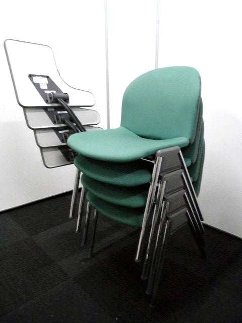 【メモ台付】スタッキングチェア コクヨ製のグリーンカラーチェア!【重ねて収納可能!!】- 立川・八王子店